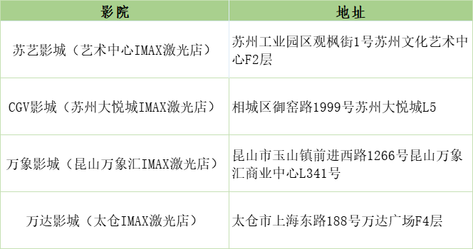 此外,苏艺影城(艺术中心IMAX激光店)、CGV影城(苏州大悦城IMAX激光店)还在此基础上搭载了12.1声道环绕音响,让观众更能“声”临其境。