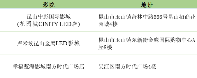 苏州目前共有3家影城配备LED影厅
