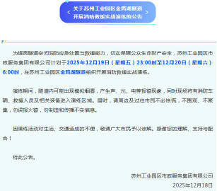 为提高隧道空间消防应急处置与救援能力,切实保障公众生命财产安全,苏州工业园区市政服务集团有限公司计划于2025年12月19日(星期五)23:00时至12月20日(星期六)6:00时,在苏州工业园区金鸡湖隧道组织开展消防救援实战演练。