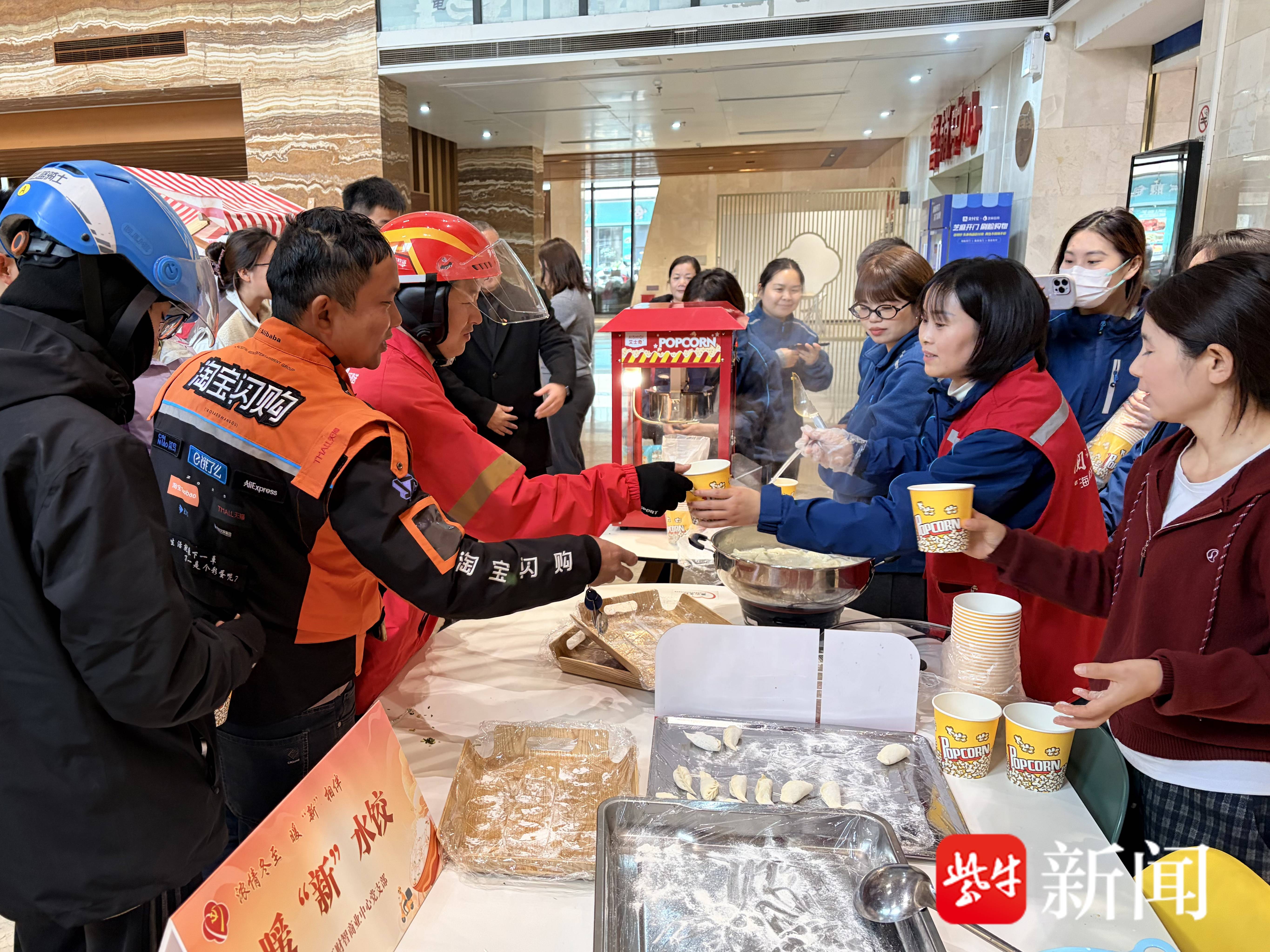 冬至将至,寒意渐浓。苏州吴江太湖新城的“海棠新享汇·邻暖驿站”里,却已暖意融融。12月19日,一场由苏州吴江太湖新城“两新”党委牵头的“浓情冬至 暖‘新’相伴”关爱活动在此展开——外卖骑手领到了加绒手套,快递小哥戴上了保暖耳罩,网约车司机为孩子挑到崭新的绘本;空气中弥漫着现煮水饺的香气,爆米花刚出锅的甜香阵阵扑鼻……上百名日夜奔忙的城市“奔跑者”,在这个不打烊的驿站里,遇见了一段温暖而从容的冬至时光。