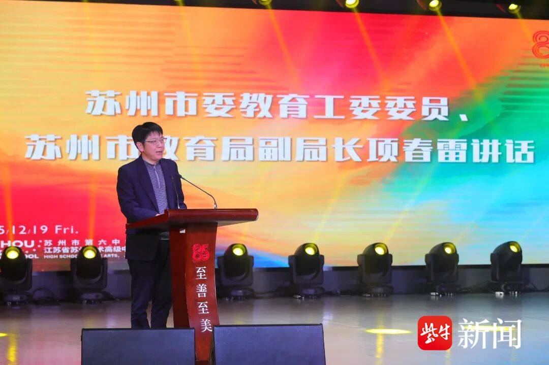 苏州市委教育工委委员、苏州市教育局副局长项春雷讲话中对苏州六中艺术教育特色办学成果以及汇聚社会各界力量开门办学的理念给予充分肯定,同时对艺术教育工作提出要以课程改革为核心筑牢美育浸润根基,以文化传承为灵魂彰显美育地域特色,以协同育人为支撑拓宽美育实施路径,以智慧赋能为突破创新美育发展形态,共同打造“苏式美育”新高地。