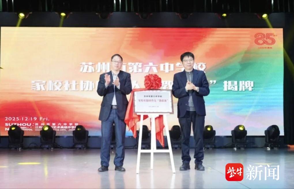 为搭建优质教育联动平台,汇聚多方育人资源,苏州市第六中学校家校社协同育人“教联体”现场揭牌,同时为苏州市公共文化中心、苏州博物馆、苏州市拙政园管理处、苏州市狮子林管理处、苏州市立医院东区、苏州市平江派出所、苏州市姑苏区平江街道北园社区、苏州市家长学校总校、苏州市振吴实验学校、苏州市保利剧院首批十家“教联体”协作单位颁发证书。