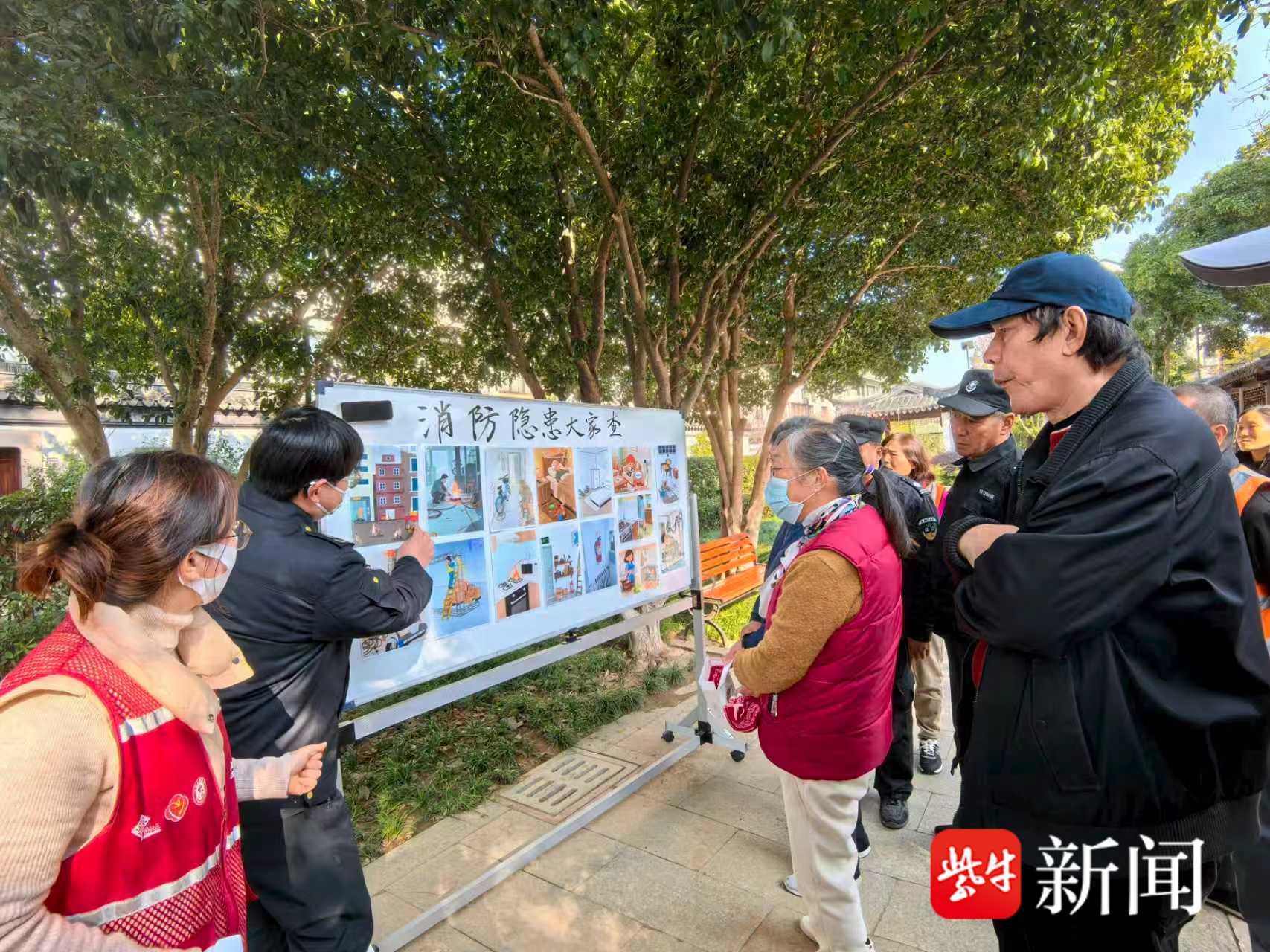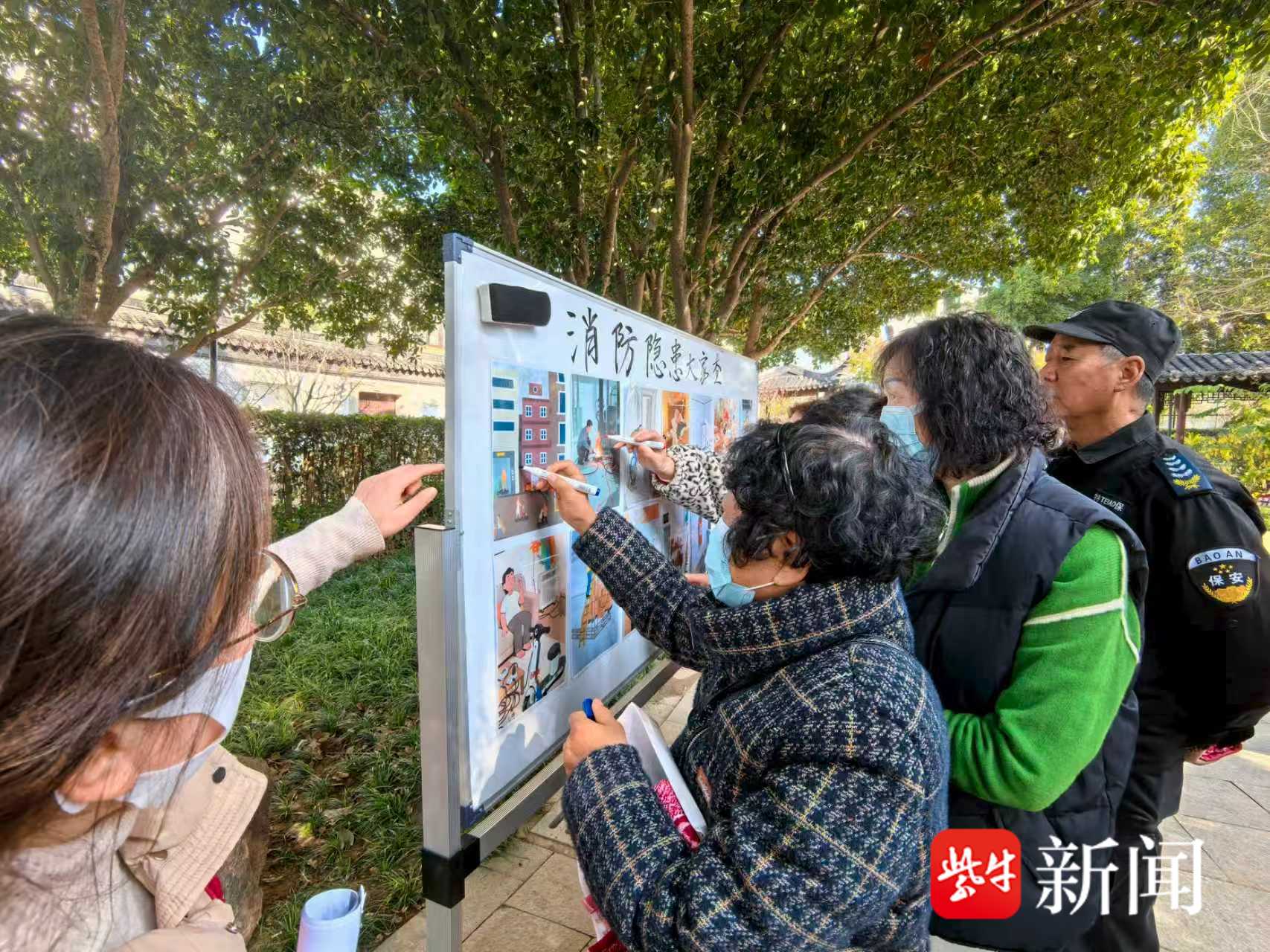 活动伊始,街道应急局的工作人员结合近年来典型火灾案例,用通俗易懂的语言讲解了火灾预防、初期火灾扑救、火场逃生自救等消防安全知识。针对社区居民日常居家、商户经营过程中容易忽视的消防安全隐患,工作人员通过“消防大家来找茬”互动游戏,将常见的消防隐患场景制作成图文展板,邀请现场居民、网格员、物业及商户代表分组参与竞答。大家纷纷踊跃举手,仔细辨别图中存在的堵塞消防通道、私拉乱接电线、违规存放易燃易爆物品等隐患问题,在轻松愉快的氛围中加深了对消防安全隐患的认知。