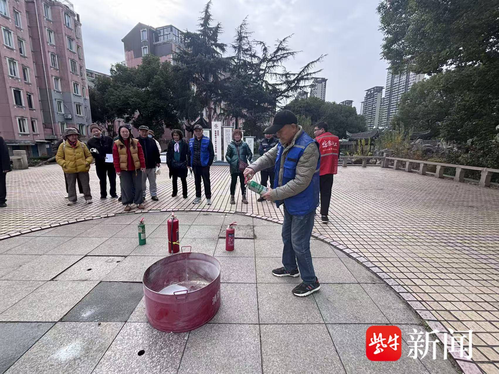 目前,家庭与公共场所常用的灭火器主要有两类:红色罐体的干粉灭火器适用范围广泛,可有效扑灭固体、液体、气体及带电设备引发的火灾;绿色罐体的水基型灭火器则兼具环保、无毒、降温的优势,尤其适用于扑救初期油类火灾,灭火后不会留下残留,对物品造成的损害更小。“不同类型的火灾必须选用对应的灭火器,一旦选错,不仅灭火效果大打折扣,还可能引发更大的安全隐患。” 本次演练现场,社工还开展了简明扼要的消防安全知识普及,向居民和志愿者详细讲解了灭火器的构造原理、规范使用步骤,以及日常检查维护的关键要点。