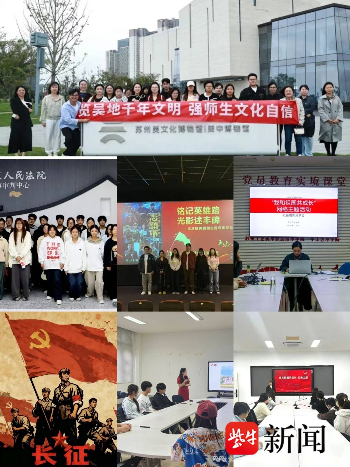 视觉传达学院组织学子走进吴文化博物馆、宝带桥等文化地标,触摸历史脉络,感悟文明传承;环境艺术学院举办主题观影与研讨活动,为师生党员带来深刻的精神洗礼;服装设计学院创新开展“沉浸式”法治实践活动,带领师生走进吴中区人民法院,在实践中提升法治意识与爱国情怀。美术学院学子以创意作品重温红色记忆,工业设计学院与数字艺术学院则通过红色故事分享、研学实践等形式,引导青年学子传承革命传统、勇担时代使命。