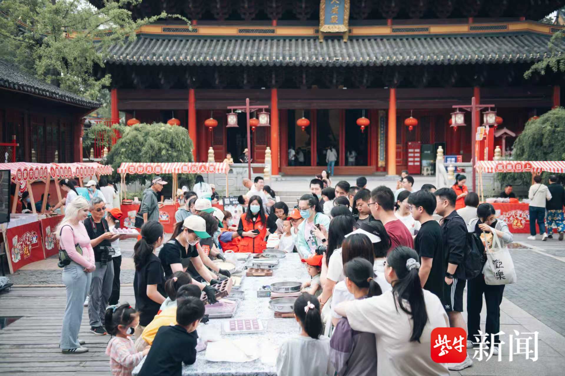 这份对乡土的珍视,也延伸至文化的根脉。徐市社区“非遗在董浜 畅享文化夜”项目入选江苏省“非遗在社区”试点优秀案例。居民和孩子们走进红木雕刻工作室、苏派盆景基地,学习灯谜、制作叫化鸡、体验爊味蒸菜;端午时节,常熟文庙内举办“定胜糕祈福”活动,亲子家庭亲手书写“金榜题名”心愿牌,领取限量“定胜糕盲盒”。11项非遗从展柜走入日常,化作可触摸、可参与的生活仪式——传统,就在烟火气中悄然延续。