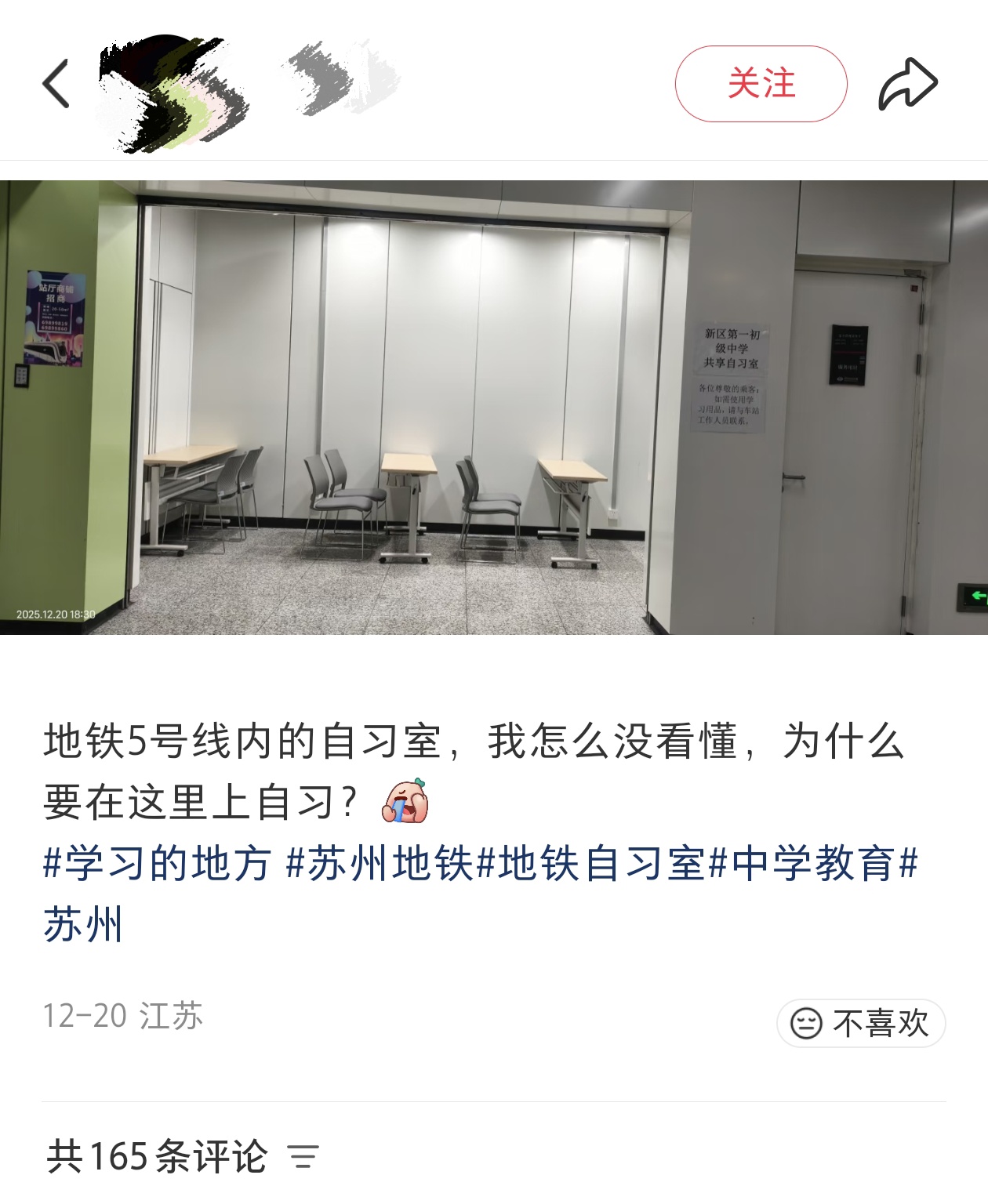 苏州地铁站里建自习室,是卷出新高度还是暖出新温度?