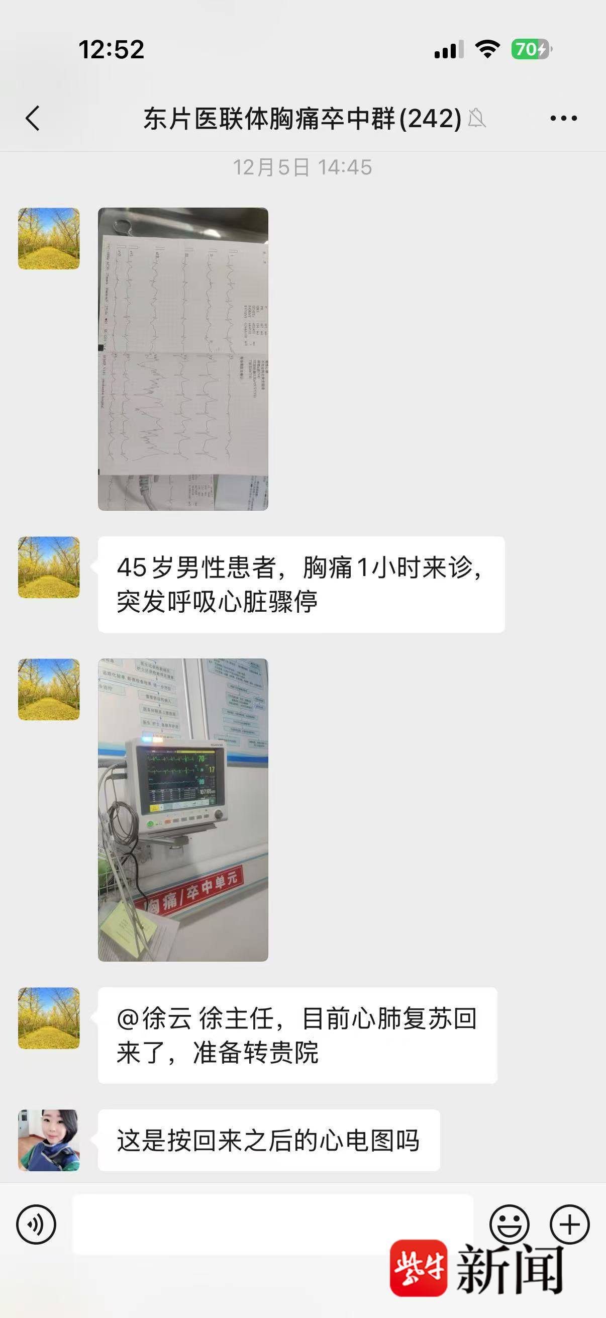 据了解,12月5日14 时22分,一名44岁男性患者因“突发胸痛1小时”自行来到苏州市吴中区尹山湖医院急诊科就诊,患者有明确诱因,症状典型,急诊医师结合病情特点,第一时间将其纳入胸痛救治流程,并立即送入抢救室行床旁心电图检查。