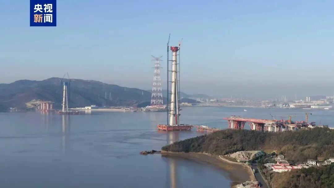 12月30日,甬舟铁路西堠门公铁两用大桥首座主塔顺利封顶,该主塔高度达294米,刷新了世界海中桥梁主塔高度的新纪录,成为世界第一高海上桥塔。