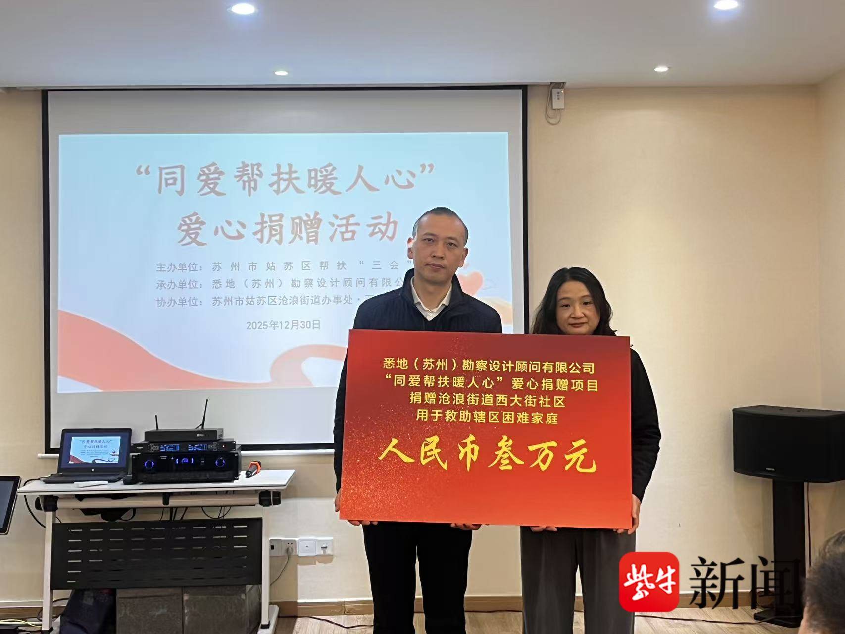 作为本次捐赠企业代表,悉地(苏州)勘察设计顾问有限公司长期投身慈善事业,连续多年参与“慈善一日捐”,积极认捐慈善项目,此次捐赠3万元专项资金,定向用于西大街社区困难群体帮扶,此外,活动也得到了姑苏区发展和改革局的积极参与与支持,共同为困难群体筑牢温暖防线。