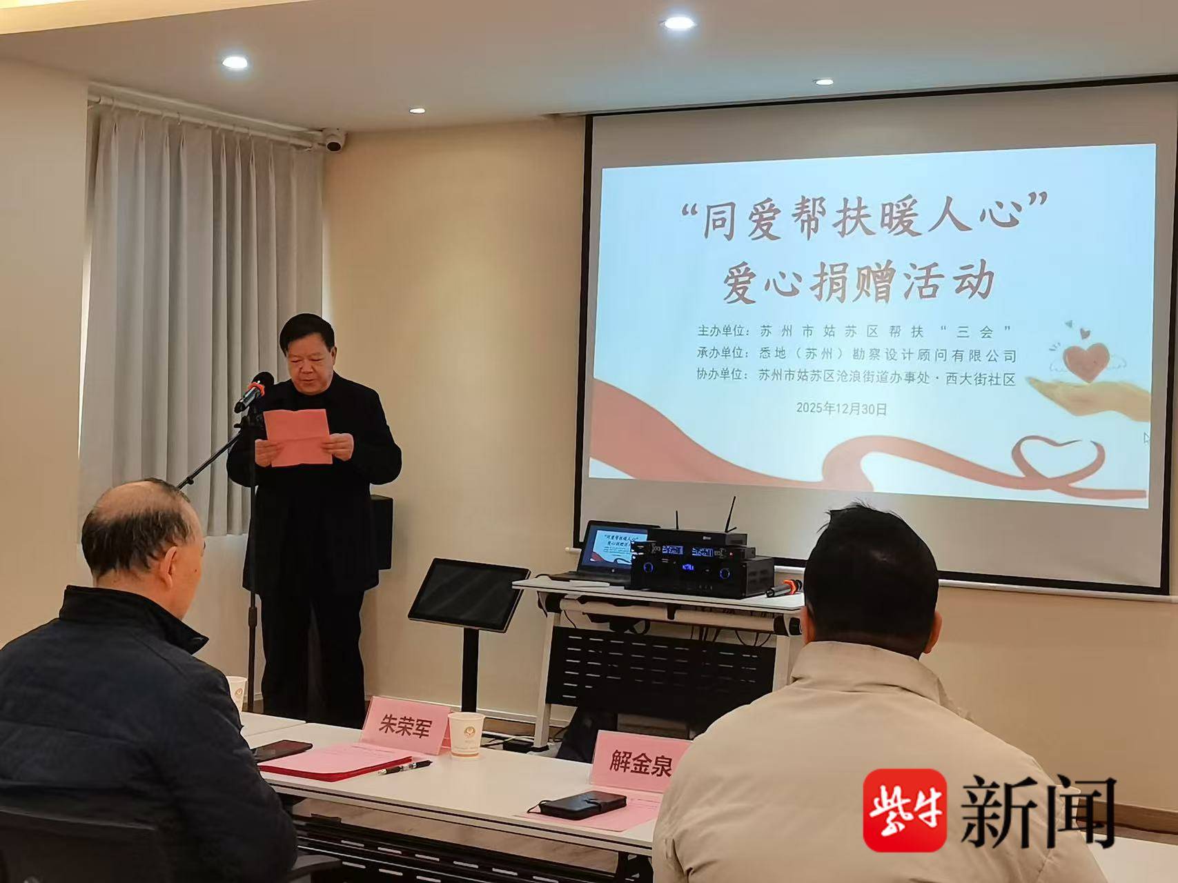 姑苏区帮扶“三会”会长解金泉在致辞中详细介绍了本次捐赠项目的初衷与规划,他表示,姑苏区帮扶“三会”始终聚焦困难群体急难愁盼,持续搭建政企社协同帮扶桥梁,此次联合爱心企业开展精准捐赠,正是践行“民生为本”理念的生动实践。