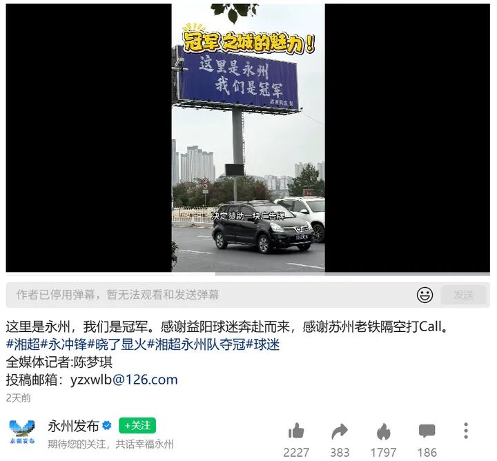 “这里是永州,我们是冠军”广告牌