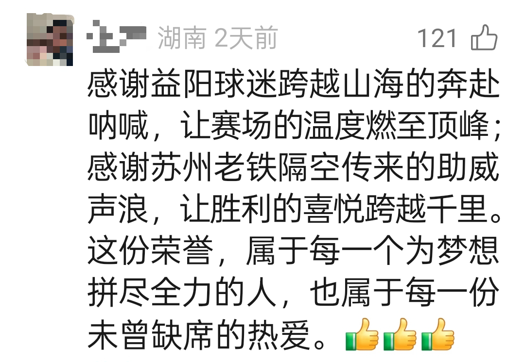 一名苏州网友被永州队的热情感染