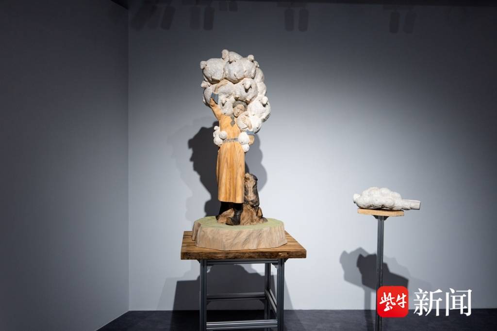 作品题材丰富多元,展现了青年创作者对生活与内心的深度观照。既有如薄博《从天上落下一朵》般以诗意木雕重现草原牧歌、寄托自然情怀的深情之作,也有如陈喜钊《城市旅人》般运用不锈钢与AI技术构建互动场景、直面当代青年身份认同的锐意探索。这些作品不仅承载着文化传承与情感表达,更在材料、技术与观念层面展现出大胆突破。