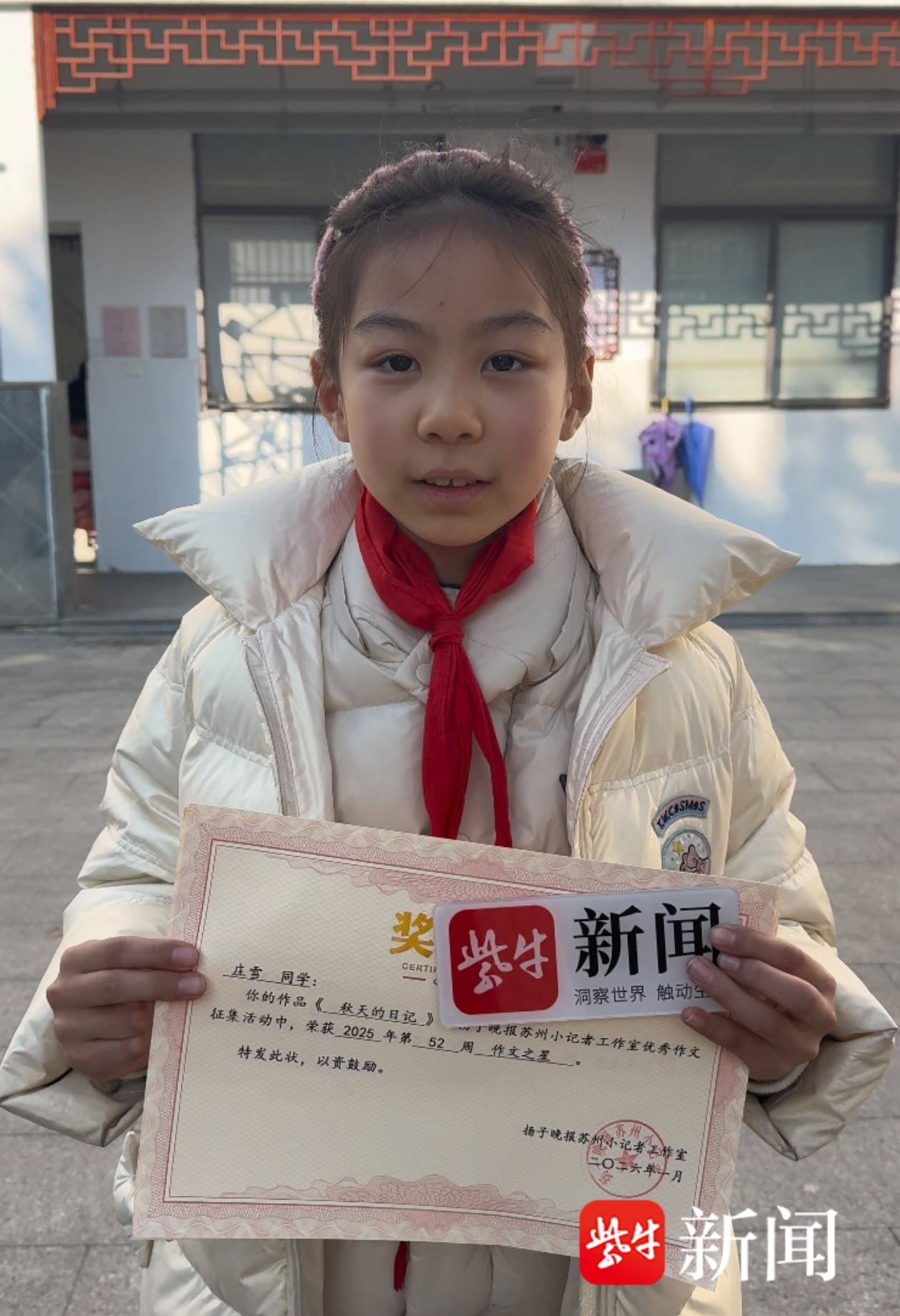 1月6日下午,扬子晚报/紫牛新闻记者来到敬文实验小学,采访了这位刚被评为“作文之星”的三年级小朋友庄雪,以及她的指导老师陈吴钢。