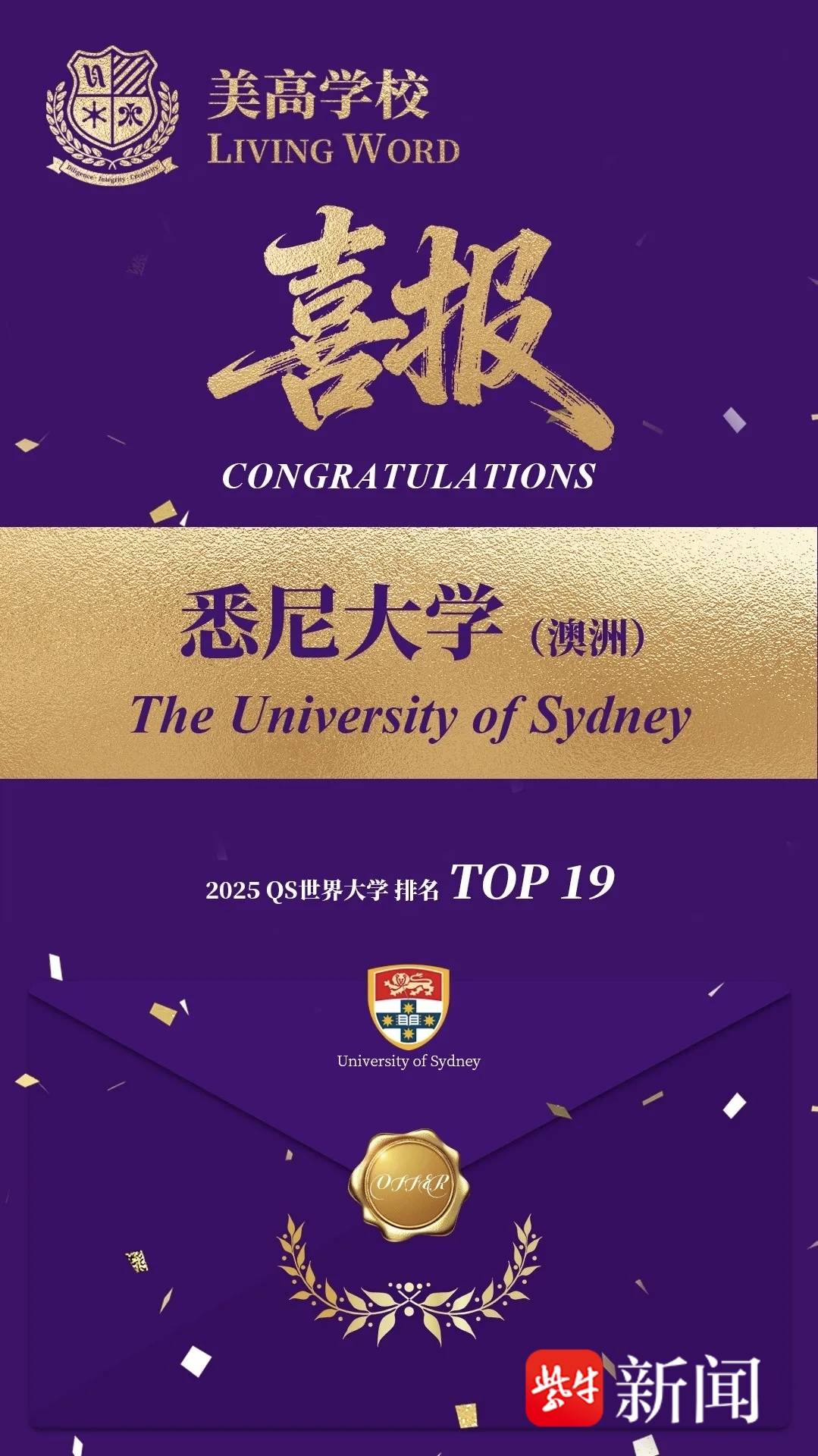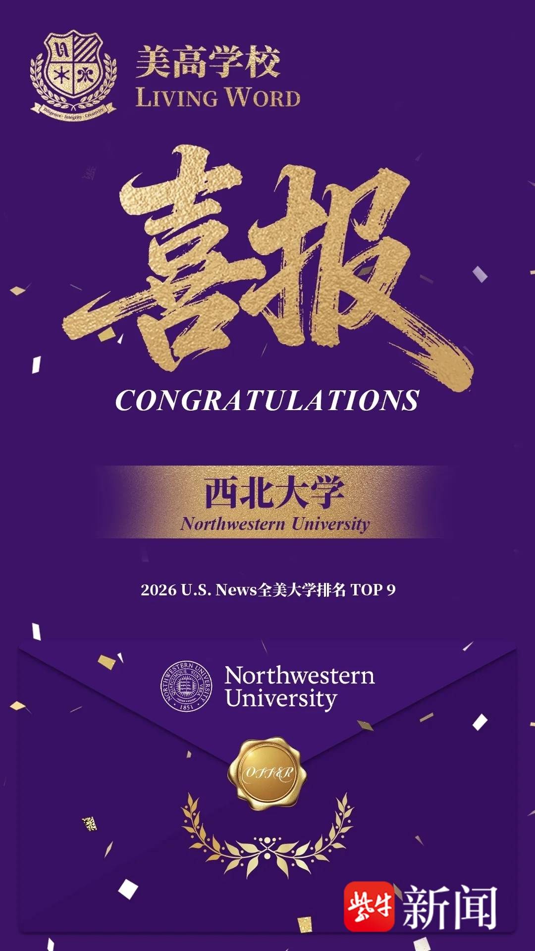 尤其值得一提的是,在2026届申请季中,美高学子成功斩获美国西北大学录取——这所常年稳居全美前十、以极高录取标准和跨学科创新教育闻名的顶尖学府,正是对我们教育理念与学生综合实力的最高认可之一。此外,学子们也斩获了享有“南半球牛津”美誉的悉尼大学录取,这份成果同样彰显了我们在全球高等教育舞台上的广泛影响力。