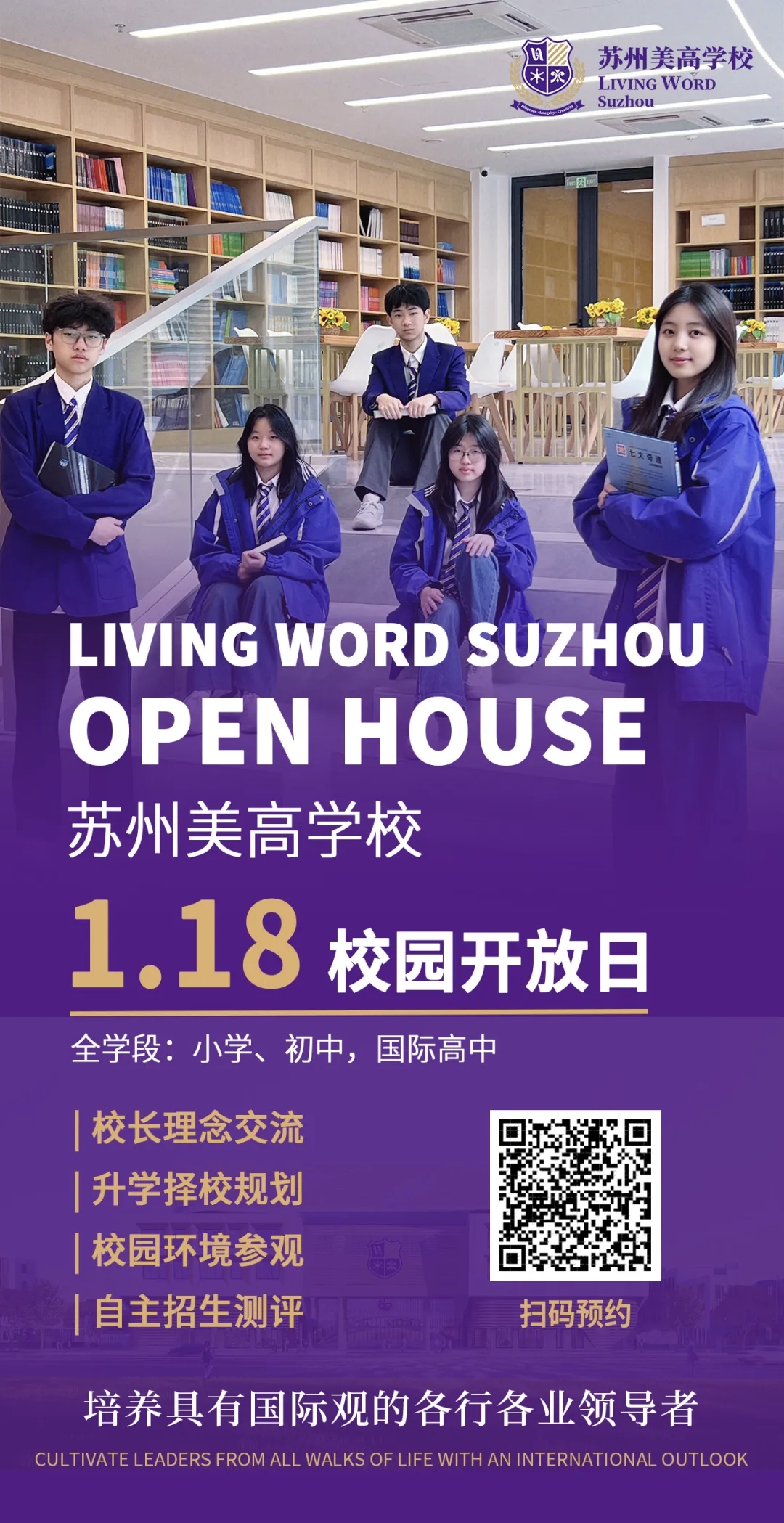1月18日苏州美高学校校园开放日,诚挚邀请您亲自走进这片教育的理想之地,为孩子“可能的未来”铺路搭桥。