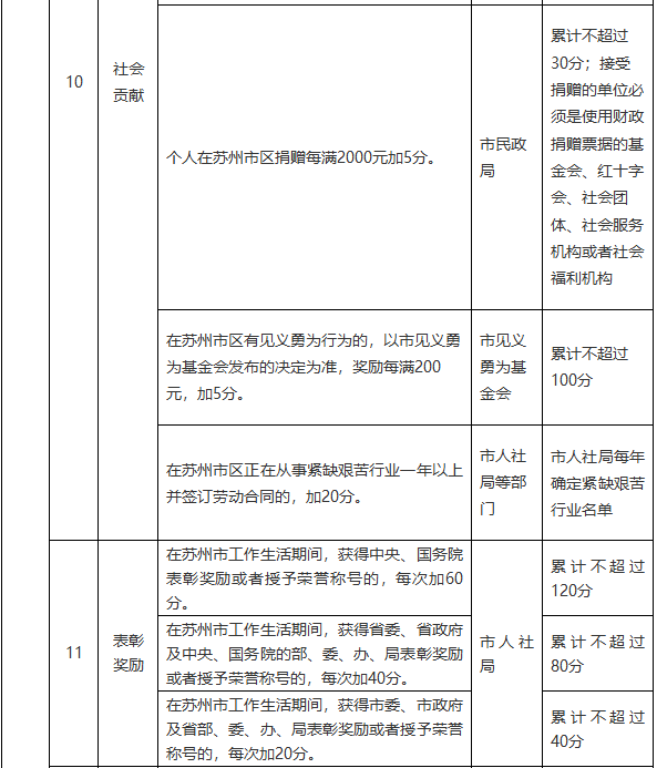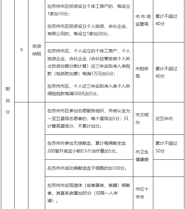 第十一条附加分包括年龄状况、房产情况、文化学历、技术技能水平、服兵役情况、缴纳住房公积金、投资纳税、社会贡献、表彰奖励、发明创造等赋分。