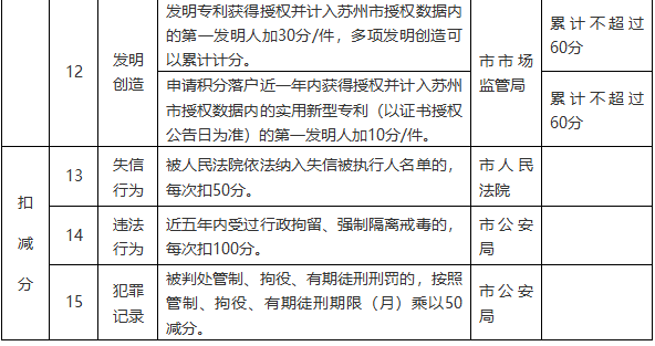 第十二条扣减分包括失信行为(被人民法院依法纳入失信被执行人名单)、违法行为和犯罪记录扣分。