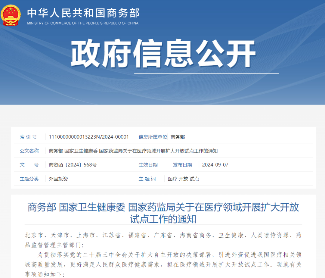 2024年9月,商务部等三部委发布《关于在医疗领域开展扩大开放试点工作的通知》,拟允许在苏州等9地设立外商独资医院。2025年4月,国务院批复同意《加快推进服务业扩大开放综合试点工作方案》,明确将苏州等9个城市纳入试点范围。2026年1月,商务部印发的《大连等9城市服务业扩大开放综合试点任务》,明确支持苏州设立外商独资医院,为苏州提升服务业扩大开放水平提供了新的政策支撑。