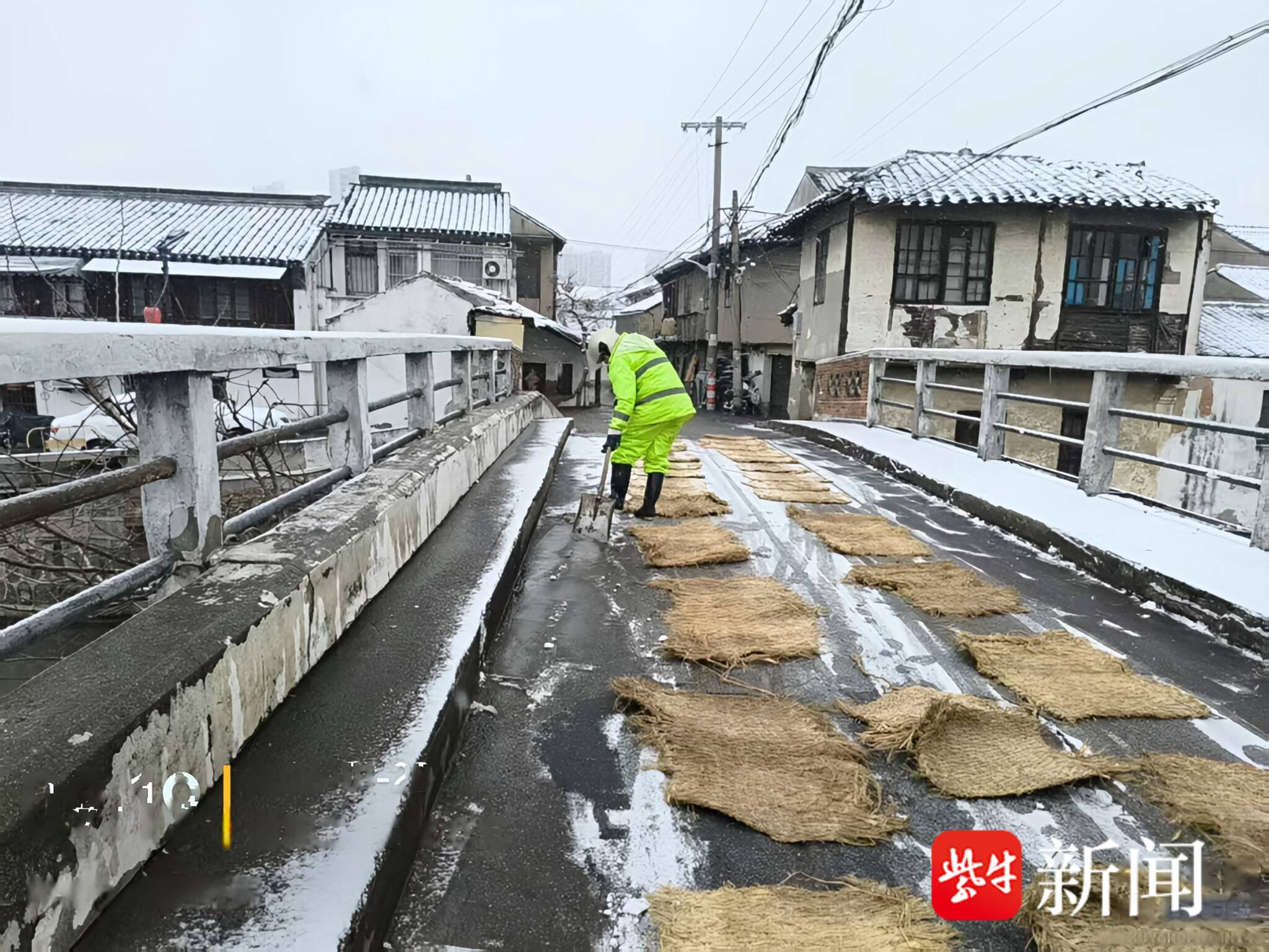从1月19日下午开始,常熟城管环卫部门陆续对城区主干道、桥梁、易结冰路段开展应急作业,提前铺设防滑草垫、撒布融雪剂。20日清晨,随着雪势增强,一线环卫工人陆续上路,清扫积雪、处置暗冰,在环城路、河桥、虞山周边等重点区域来回作业。