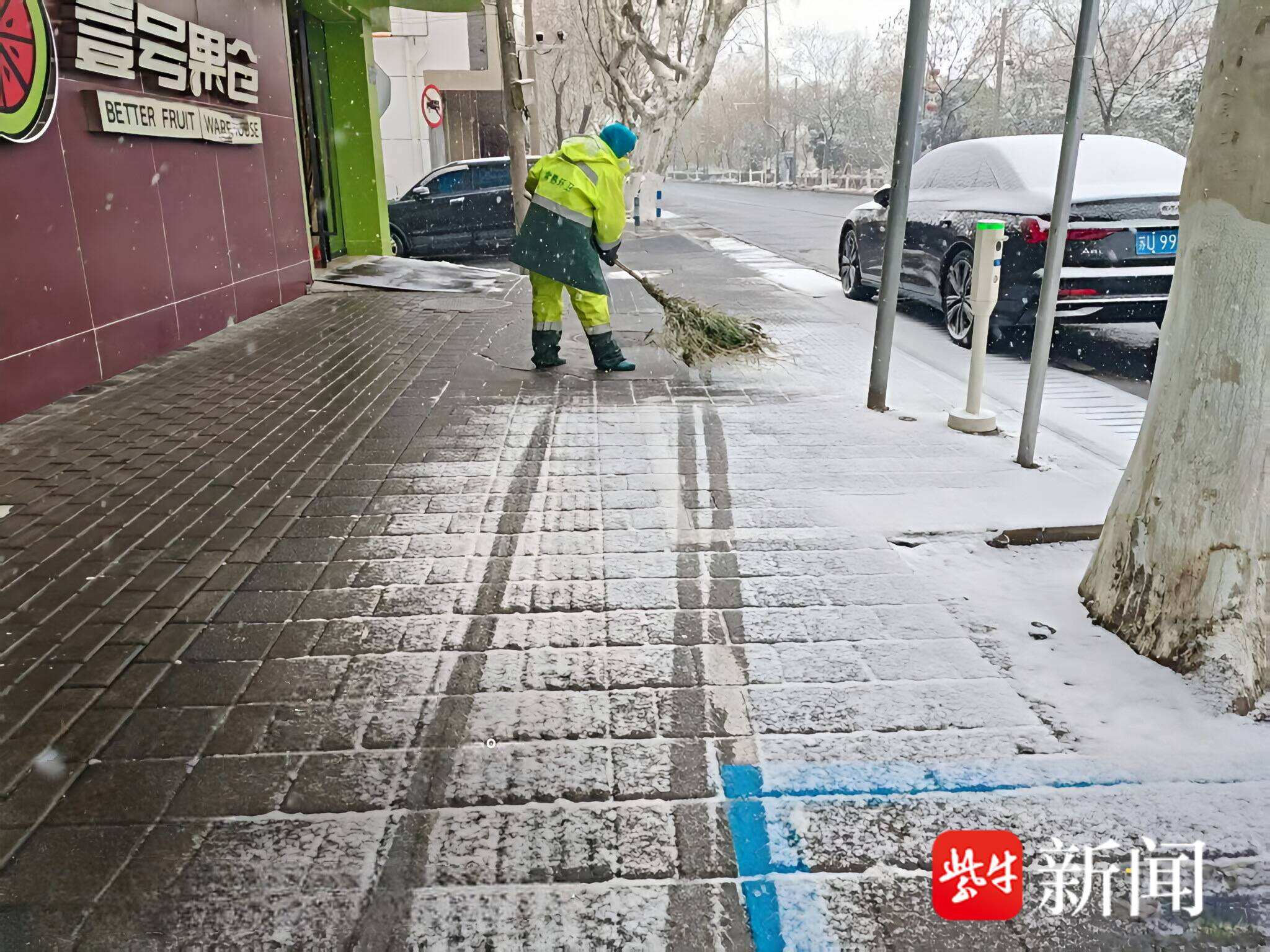 在这场雪真正到来之前,环卫工人先一步忙碌起来。