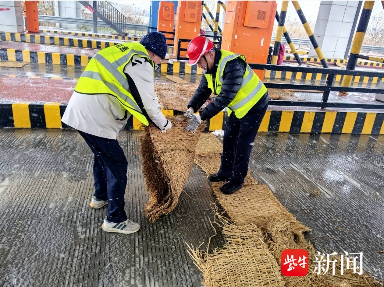 1月20日清晨,天色未明,各收费站、服务区已是一派忙碌景象。工作人员赶在车流高峰到来前,对站区广场、车道、坡道等易滑区域进行全面防滑处置。一捆捆草垫被迅速铺设开来,化为司乘人员脚下踏实安稳的“防滑垫”。服务区同步加强巡查与值守,及时补充防滑物资,并通过温馨广播与现场提示,不断传递“减速慢行、小心地滑”的关切提醒,为寒日清晨的出行增添暖意。