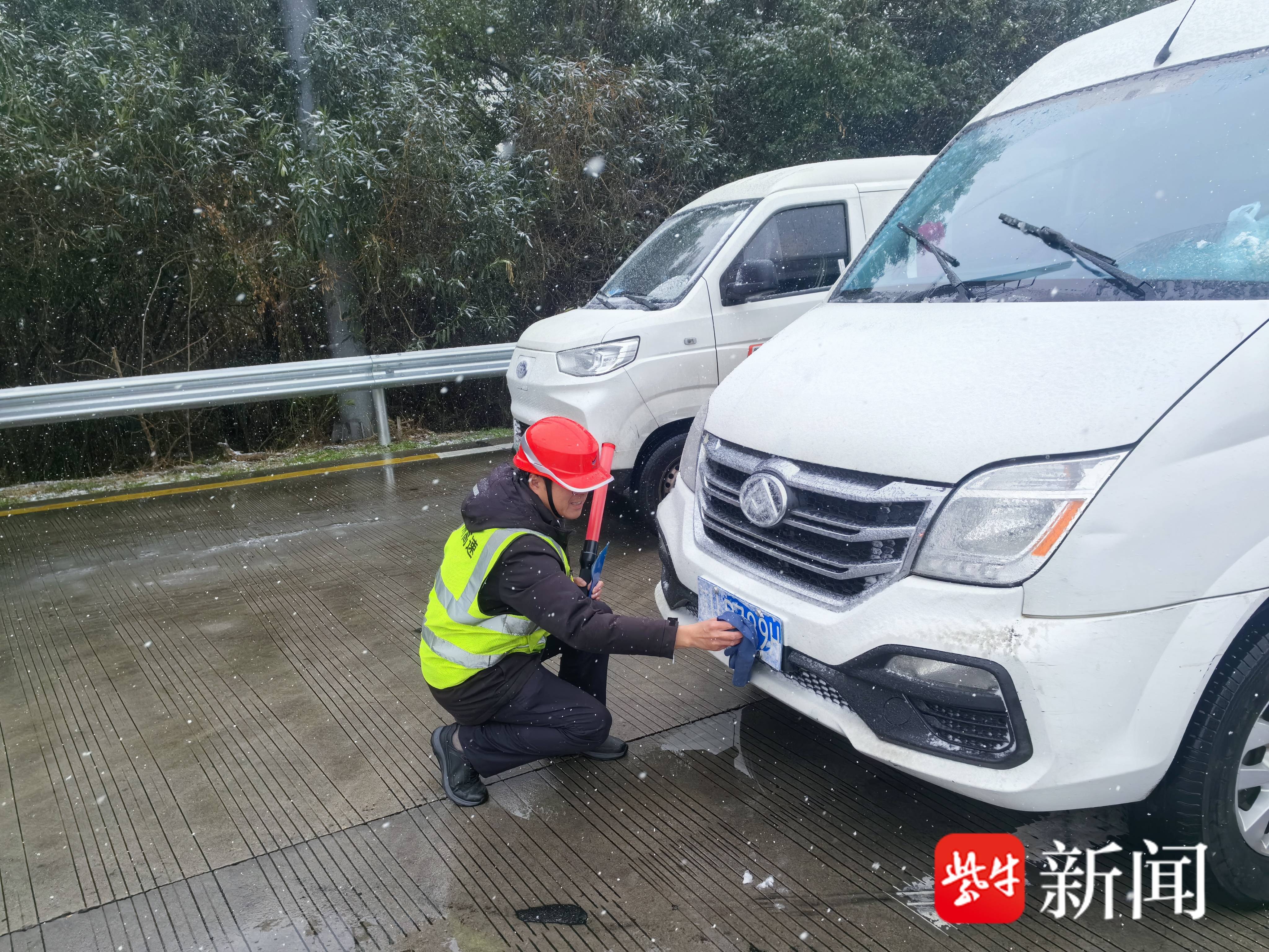 早高峰时段,随着由北向南车流增多,积雪覆盖车牌导致系统自动识别失效的情况偶有发生,影响通行效率。苏州高速全线收费站工作人员见状,立即主动上前,化身“清雪服务员”,手持工具俯身耐心为车辆清理车牌积雪。这一主动、细致的举手之劳,有效提升了道口通行效率,也赢得了过往驾乘人员的连连好评,成为风雪旅途中的一道暖心风景。