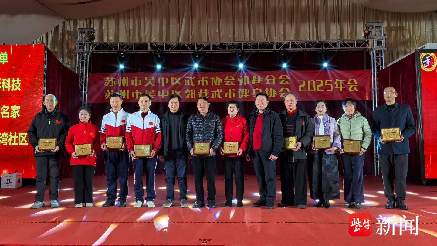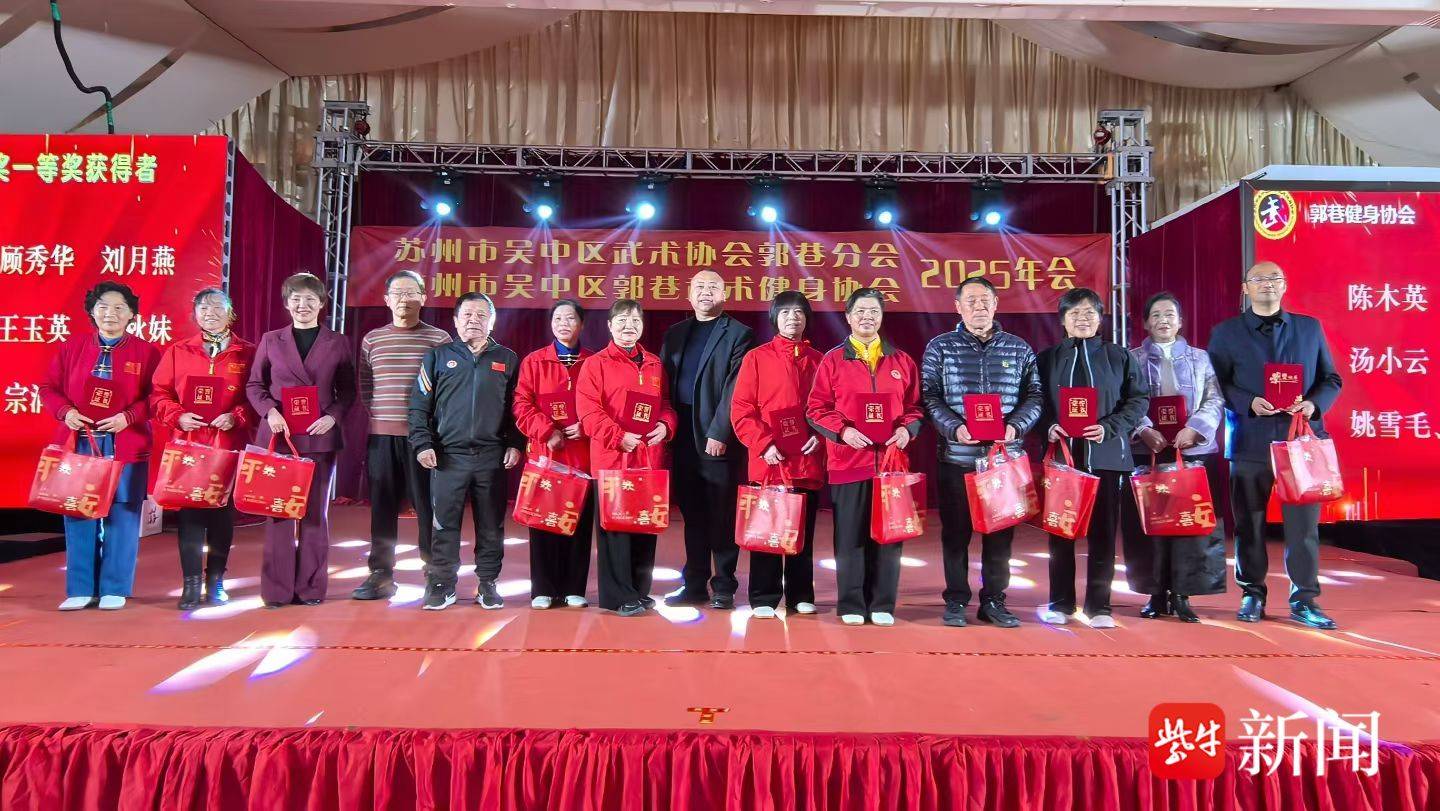 1月18日,苏州吴中区武术协会郭巷分会、吴中区郭巷武术健身协会举行2025年年会。来自市、区各级领导、武术界同仁、企业家代表及协会会员共350多人欢聚一堂,表彰先进、交流展演,共谋武术传承发展新篇。