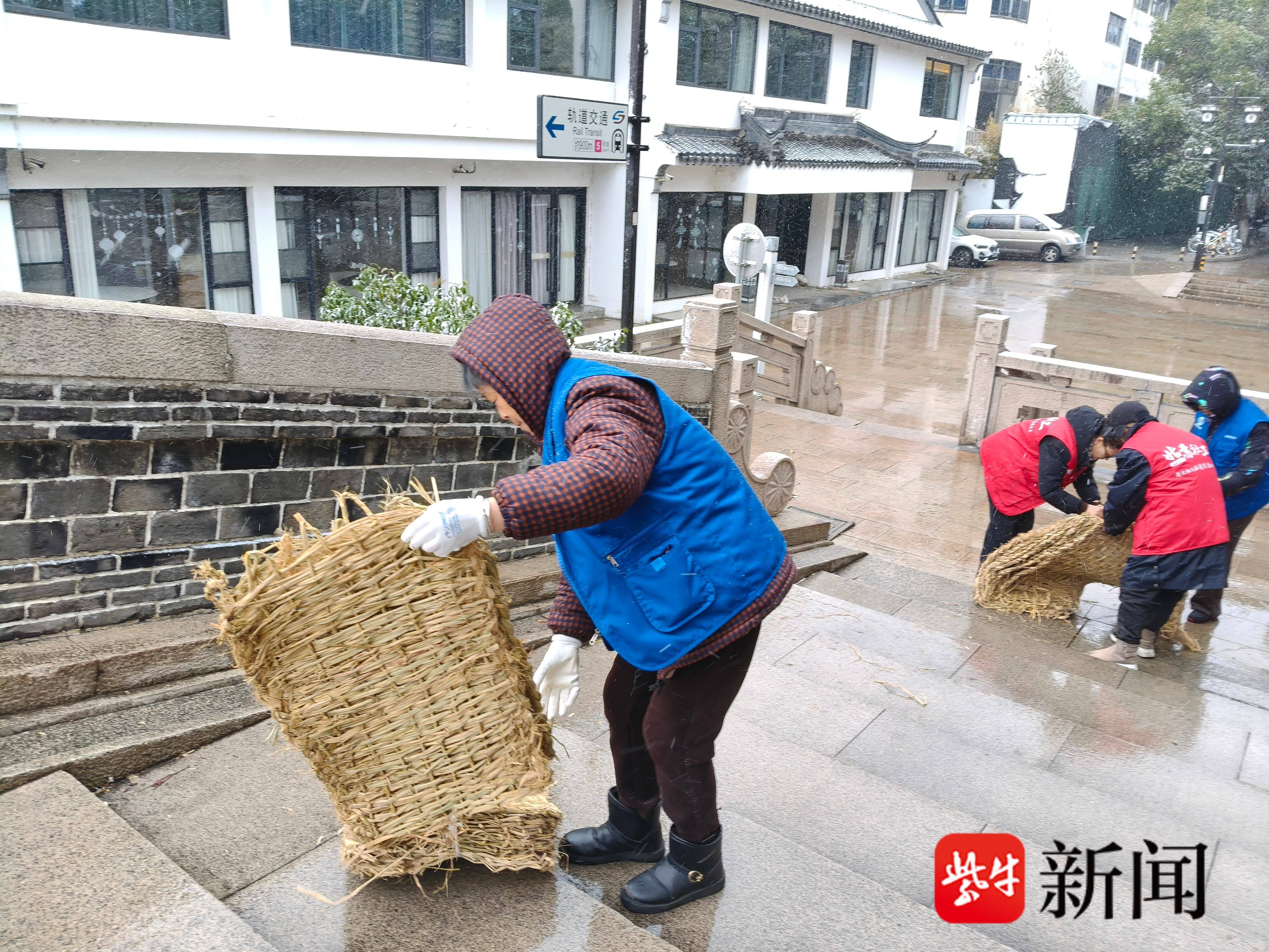 受强寒潮影响,苏州气温持续走低,路面易出现结冰湿滑现象。为保障居民出行安全,苏州市姑苏区沧浪街道西大街社区迅速响应,组织社区民兵连民兵、网格员、退役军人等志愿者队伍,提前在辖区百花洲公园开展防寒防冻保障工作,为公园主要通道、台阶等易滑区域铺设草垫、撒放融雪盐,筑起一道“防滑安全线”。
