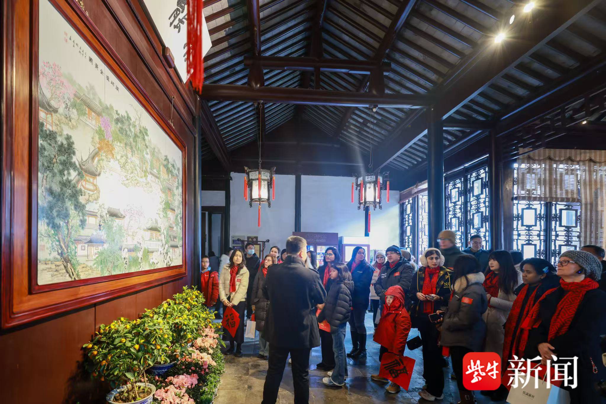 1月25日,苏州古典园林网师园内张灯结彩,撷秀楼里墨香与欢笑声交织。来自美国、俄罗斯、德国、英国、韩国等十余个国家的20余位外籍人士齐聚于此,“逛中国园 过中国年”苏州国际日·新春游园活动,在苏州园林的意境中沉浸式体验中国传统的春节文化。