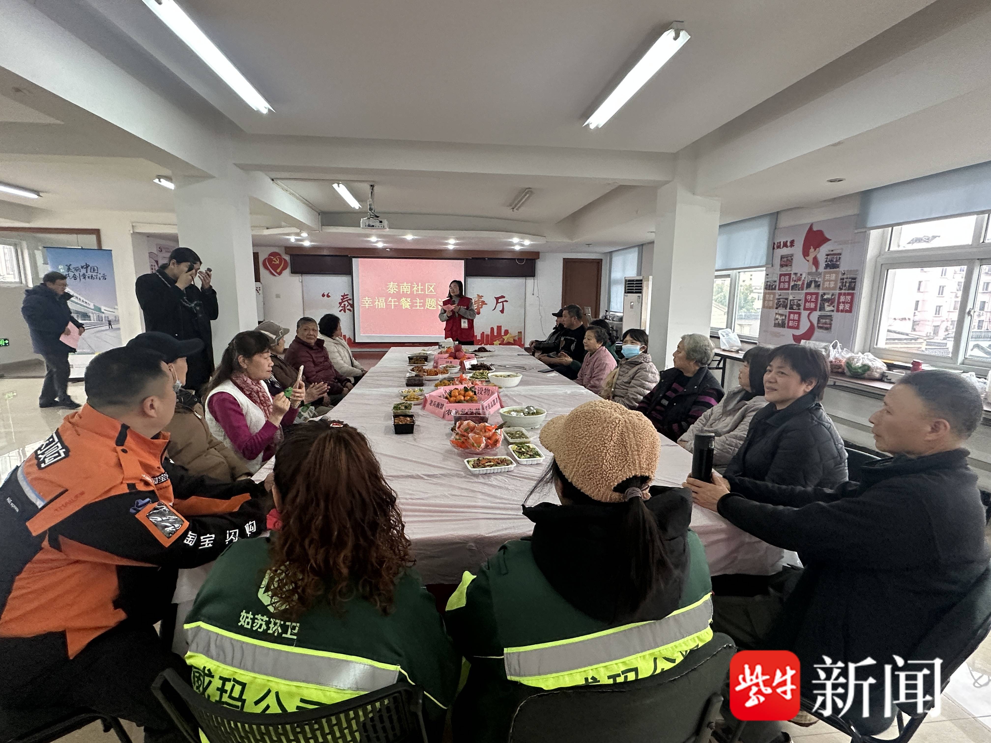新春将至,年味渐浓。苏州市姑苏区沧浪街道泰南社区活动室里暖意融融,第三届“‘农’心孝爱”新春年夜饭如期开席。活动由泰南社区联合姑苏区人社局、妇联、残联、教育中心共同主办,社区网格员、居民志愿者与辖区爱心商户携手发力,将36道精心烹制的佳肴端上餐桌,邀请辖区孤老、外卖员、残疾人、环卫工人等20余名特殊群体代表欢聚一堂,共叙邻里情,喜迎马年新春。