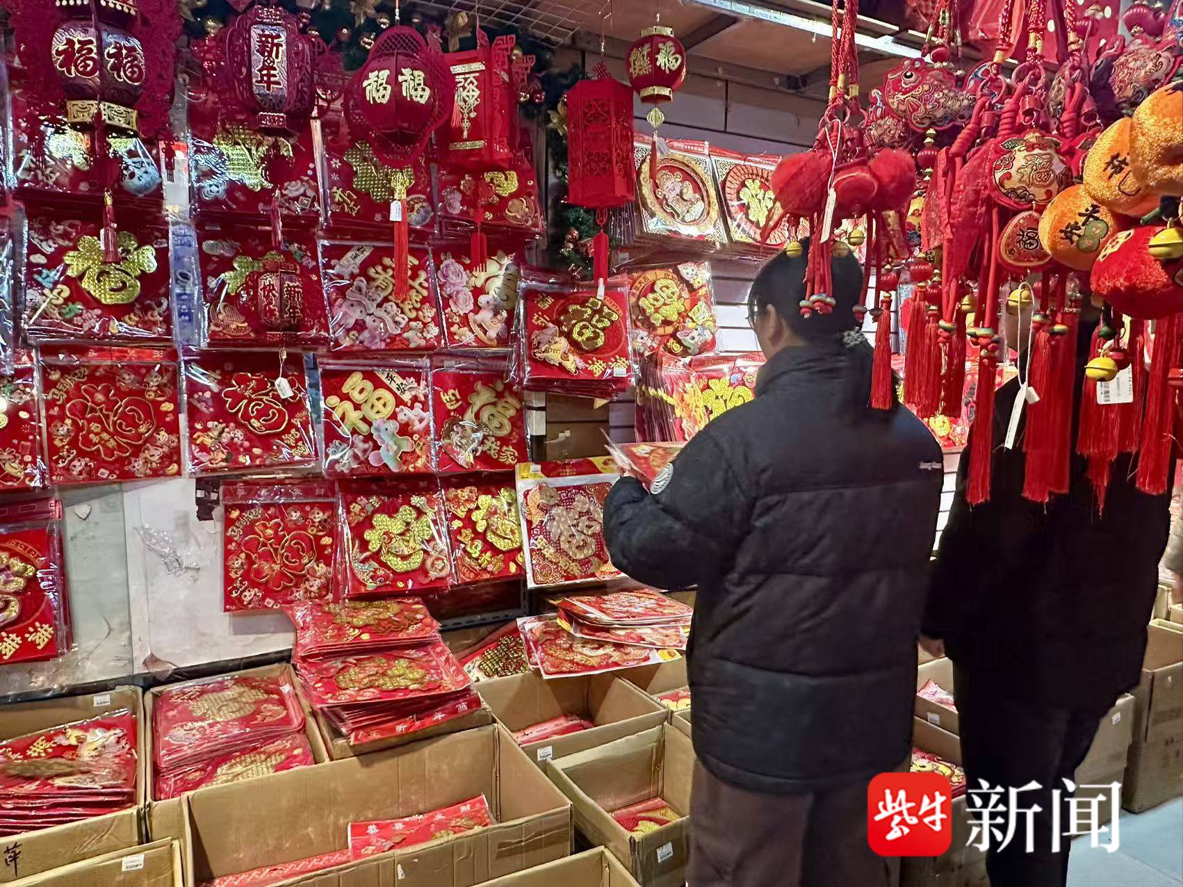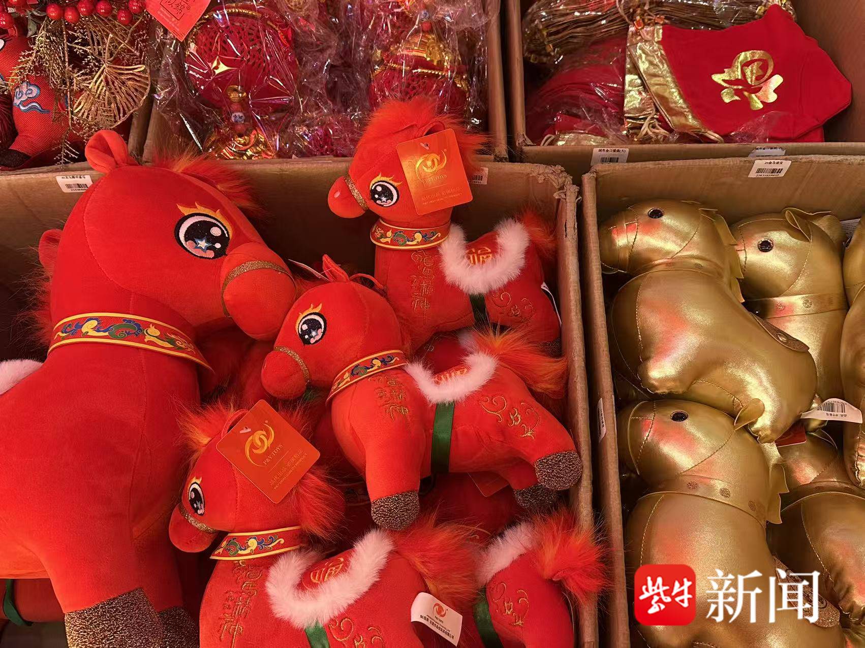 随着农历新年脚步临近,苏州各大年饰市场已是一片红火。近日,扬子晚报/紫牛新闻记者走访看到,除了传统的灯笼、春联、福字挂满档口,憨态可掬的马年特色生肖小商品扎堆上新,从卡通萌马窗花到立体骏马挂饰,从磁吸春联到LED马形灯笼,创意与喜庆交织,吸引市民纷纷“马上”采购,市场内人头攒动,年味十足。