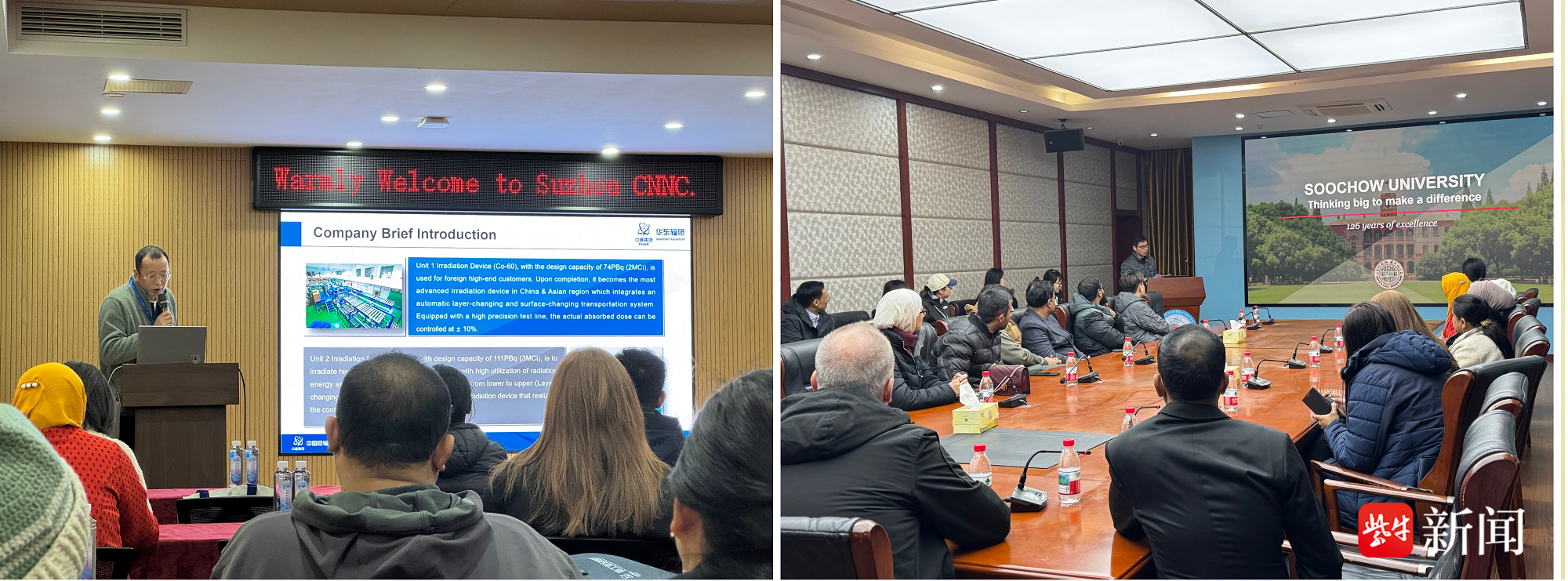 除室内教学外,培训班还安排了实地参访。学员们先后走进苏州大学放射医学与辐射防护国家重点实验室及苏州中核华东辐照有限公司。在实验室,他们深入了解到中国在放射医学前沿研究、国际标准制定与高端人才培养方面的系统布局与成就;在辐照公司,先进的辐照装置与完备的检测服务体系,展现了中国核技术在工业与医疗健康领域的成熟应用。此次参访为各国学员提供了从基础科研、临床转化到产业应用的全链条视角,拓展了对核技术跨领域价值的认知。