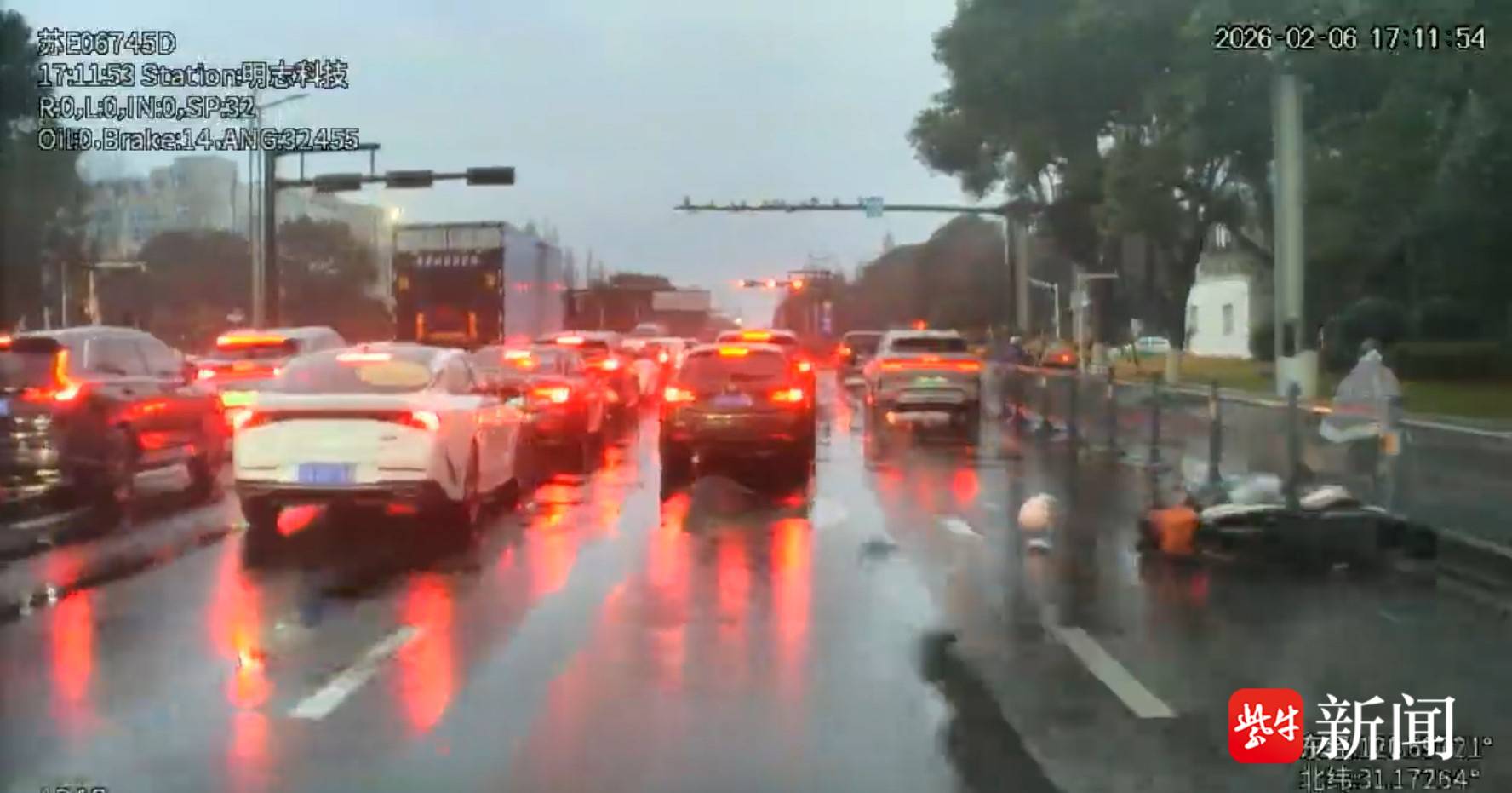 2月6日傍晚,正值晚高峰,天空飘着细雨,路面反射着湿冷的光。苏州公交集团吴江公司两名驾驶员行车途中,突遇惊心一幕:一位骑电动车的市民因路面湿滑不慎碰擦路边栏杆,头盔瞬间甩飞,人也重重摔倒在地,动弹不得。几乎是同时,两位公交司机立刻停车施救。在报警并联系120救护车后,一位选择继续护送乘客,一位选择留守救助伤者,用默契的分工和共同的担当,在寒雨晚高峰中织起了一张温暖的救助网。