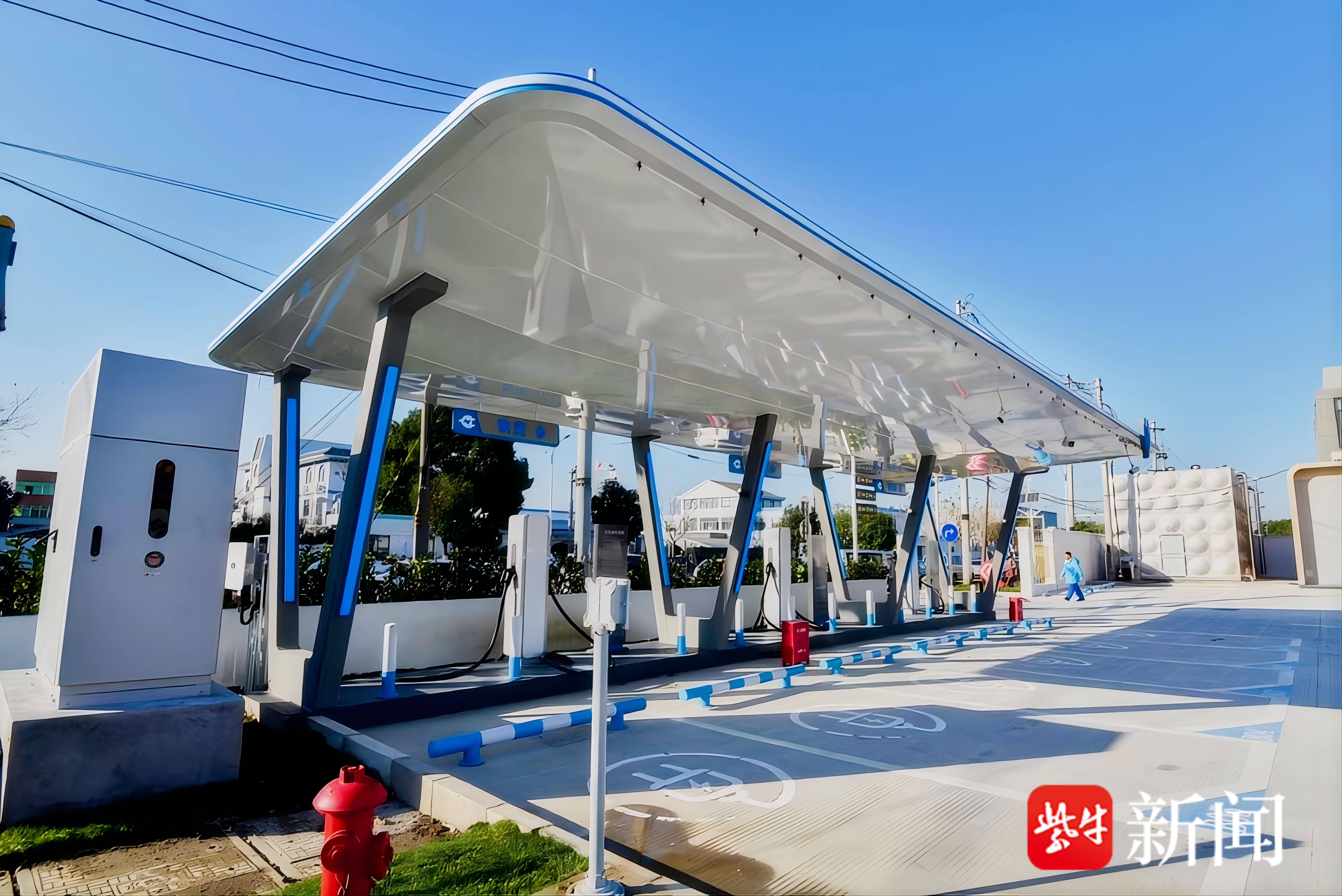 G312古南服务区距苏沪省界3.6公里,占地面积30亩,日均车流量超5万辆。服务区设置15个大车车位、23个充电车位,日均利用率超90%,是全国首个集成“油、气、氢、电、光”五种能源的普通公路服务区。服务区由交通公路部门携手能源企业中石油公司共建,双方坚持资源利用共享、统一规划设计、融合运营发展,抓住旧加油站改造升级的机遇,将毗邻原服务设施进行提升,按照“综合设计、功能互补、风格统一”的理念,将原本两块独立地块打造为供给多样化能源、提供综合性服务的交能融合共同体,实现协同共进、互利共赢发展局面。