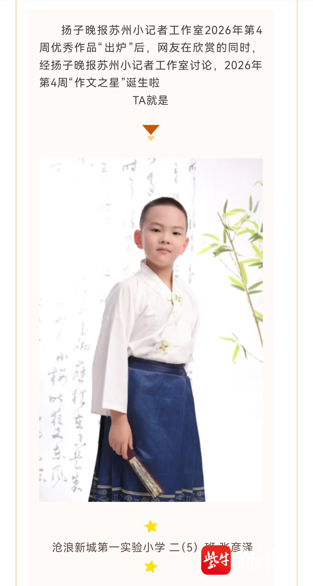 “作文之星”风采 | 张彦泽:童心绘梦 稚笔书真