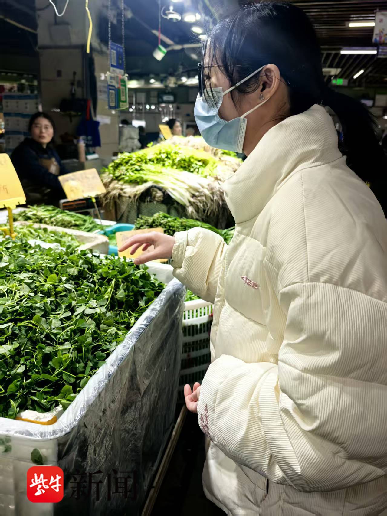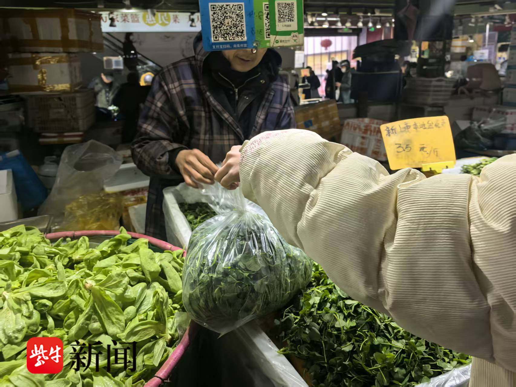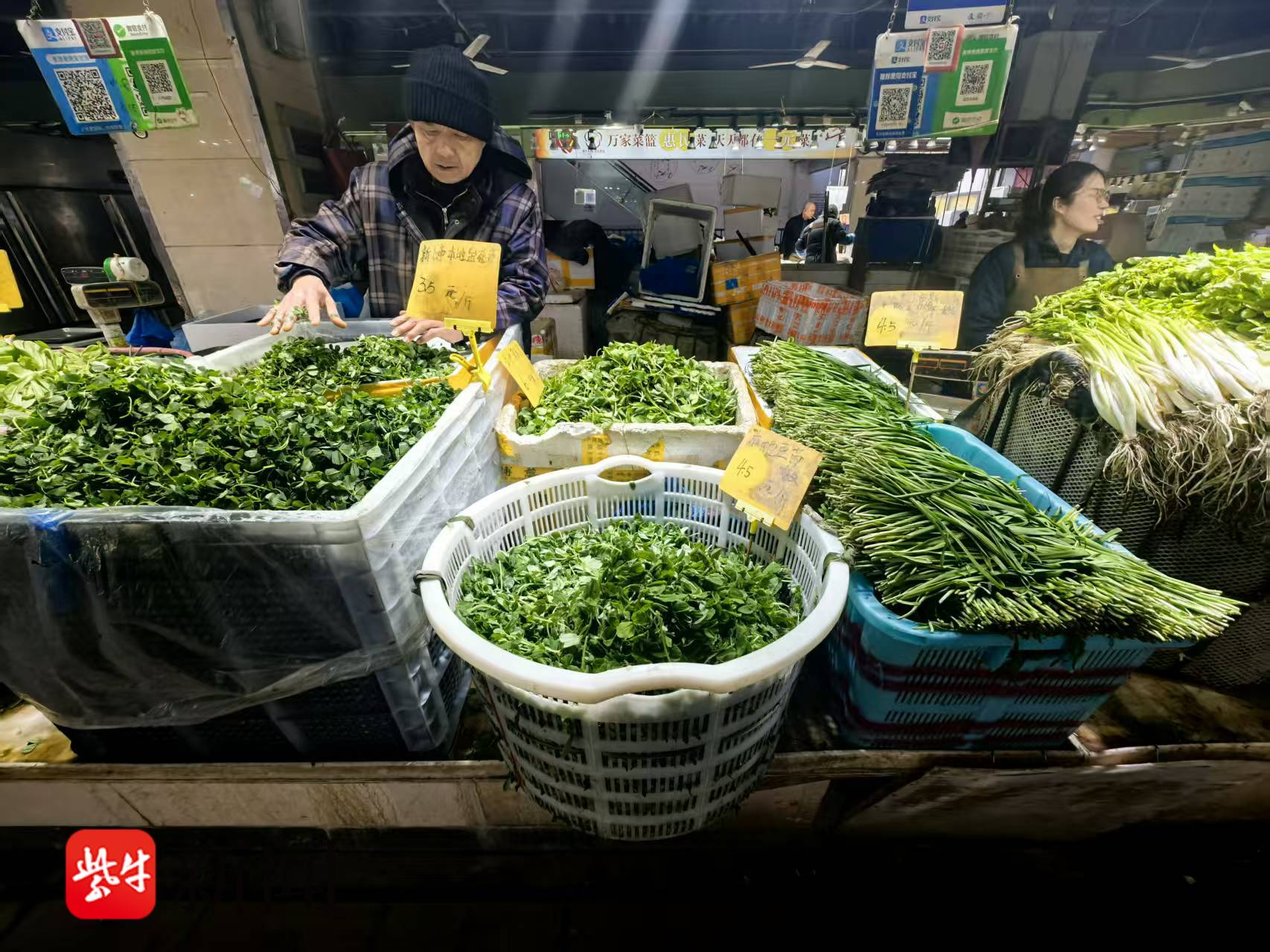 在苏州姑苏区新民桥市场蔬菜区,少数摊位已摆上鲜嫩翠绿的马兰头,叶片细嫩、带着清新野菜香气,与各类年货蔬菜同场亮相,吸引不少市民驻足询问。经营蔬菜多年的摊主孟先生告诉记者,当前马兰头上市时间尚早,货源以本地大棚少量产出为主,整体供应量有限,每天到货量不多,采购市民以尝鲜为主,整体销量偏低。“现在刚上,量少,买的人也不多,一斤 6 块钱,主要是老顾客想提前尝尝春天的味道。” 孟先生说。
