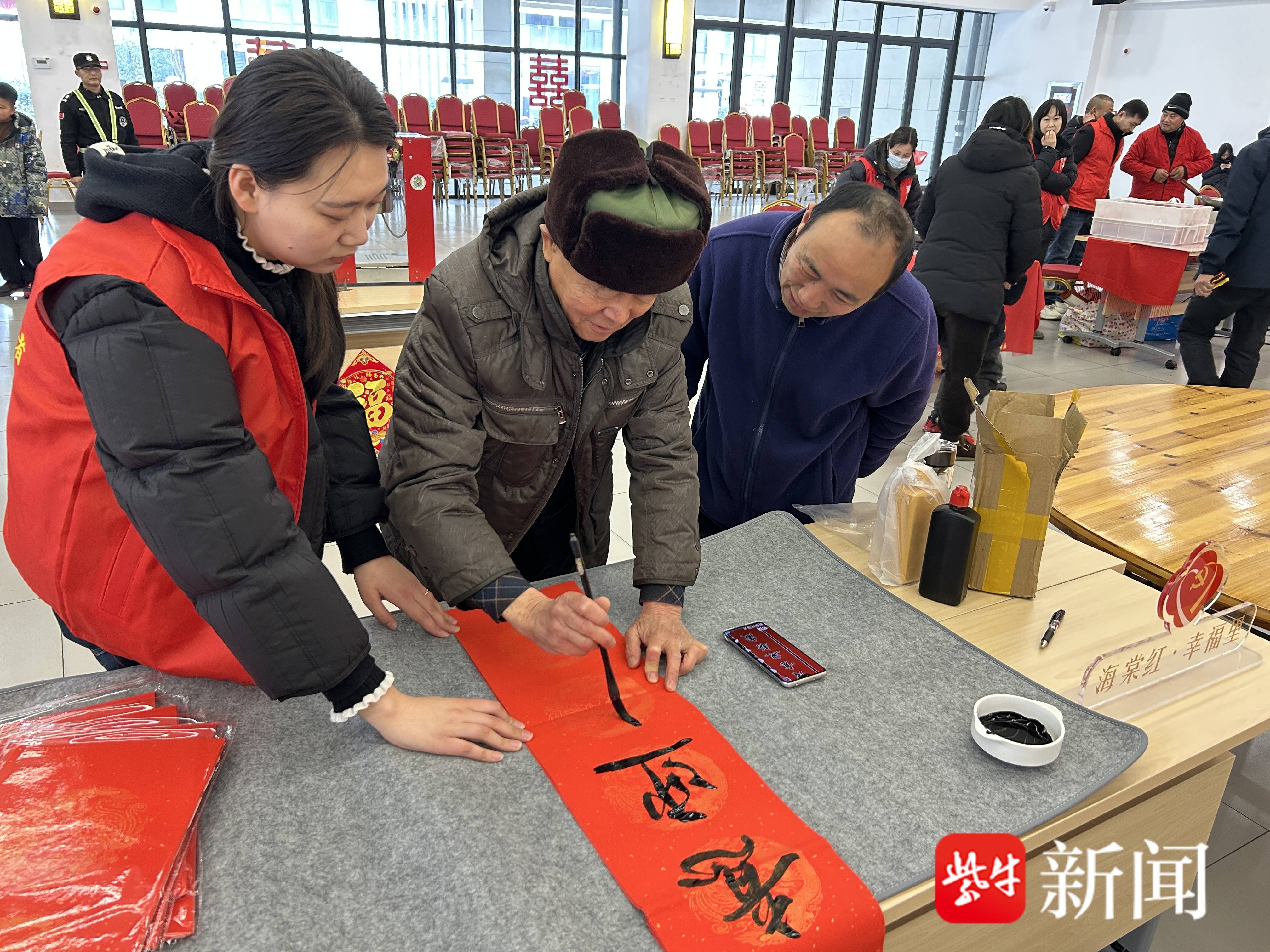 活动现场分为两大区域。美食制作区人气火爆,糖画、冰糖葫芦、海棠糕等传统小吃摊位前围满了跃跃欲试的居民。在志愿者的指导下,大家亲手体验制作过程,感受传统手艺的魅力。社区邀请的民间书法爱好者挥毫泼墨,一幅幅寓意吉祥的春联和“福”字墨香四溢,成为最受欢迎的“年货”。趣味活动区同样热闹非凡,套圈、吹乒乓球、拓印红包、夹豆子、制作复古灯笼等游戏趣味横生,无论老少都能找到属于自己的乐趣。孩子们在游戏中欢笑奔跑,大人们也重拾童真,在互动中拉近了邻里距离。“自己做的糖葫芦特别甜,写的春联也更有意义!这样的活动让年味又回来了!”带着孙子前来游园的李阿姨高兴地说。活动现场,居民们不仅收获了亲手制作的美食和精美的春联,更在互动体验中感受到了传统文化的深厚底蕴与社区大家庭的温暖。