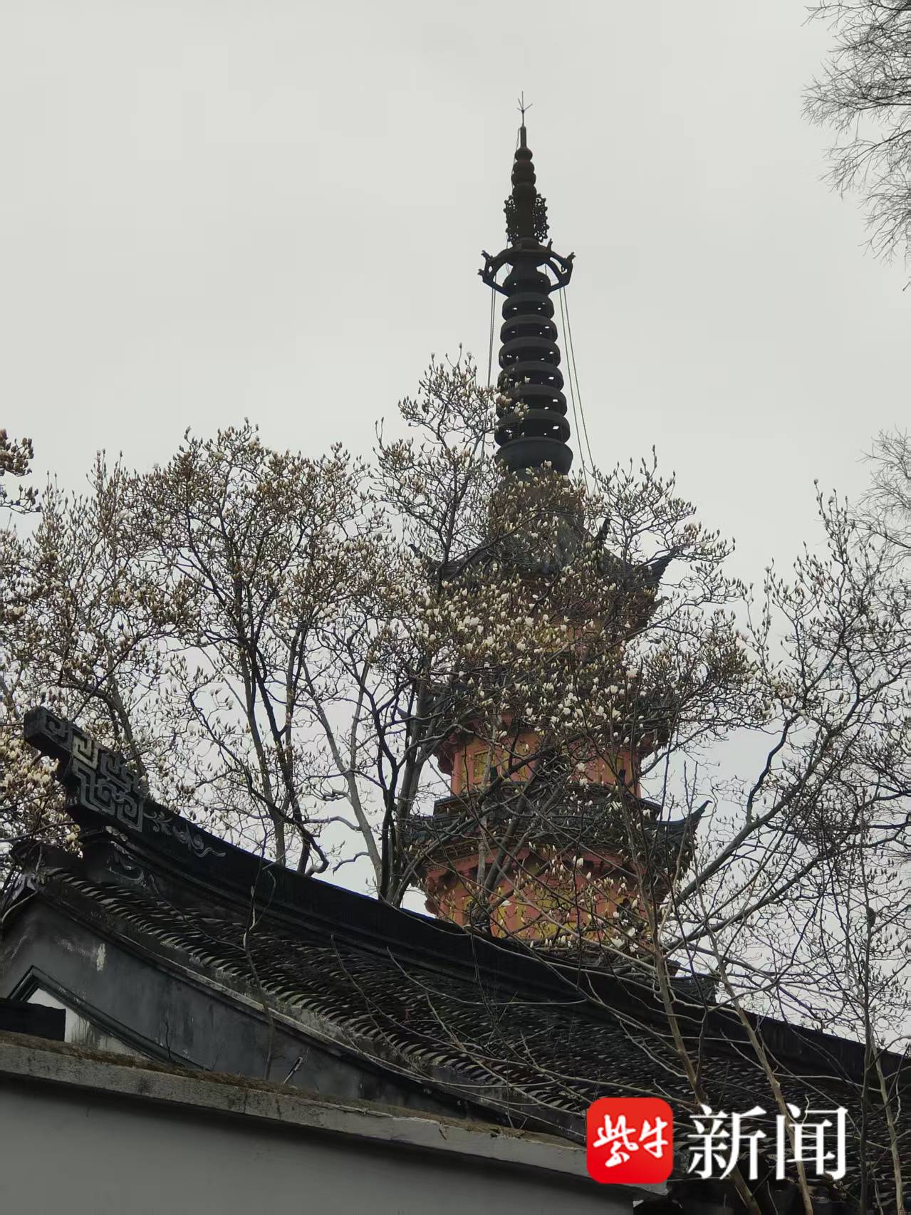 目前,苏州街头的干将路、莫邪路、环古城河城墙段玉兰已次第绽放。古典园林中,留园、网师园、狮子林的玉兰也悄然吐蕊。记者在留园看到,两株玉兰含苞待放,与白墙黛瓦、疏竹窗格相映成趣,平添几分早春的清雅意趣。园外停车场的一株玉兰则已满树繁花,洁白如雪,成为游客意外的惊喜。