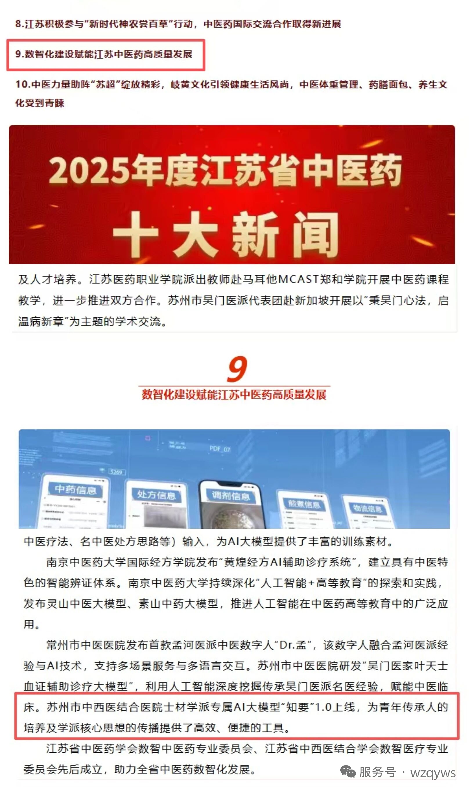 在这场科技与健康的“双向奔赴”中,中医药领域如何破题?苏州吴中区已给出了一份独具“吴门特色”的答卷。在刚刚过去的2025年,苏州市中西医结合医院士材学派专属AI大模型“知要”1.0成功入选“2025年度江苏省中医药十大新闻”。