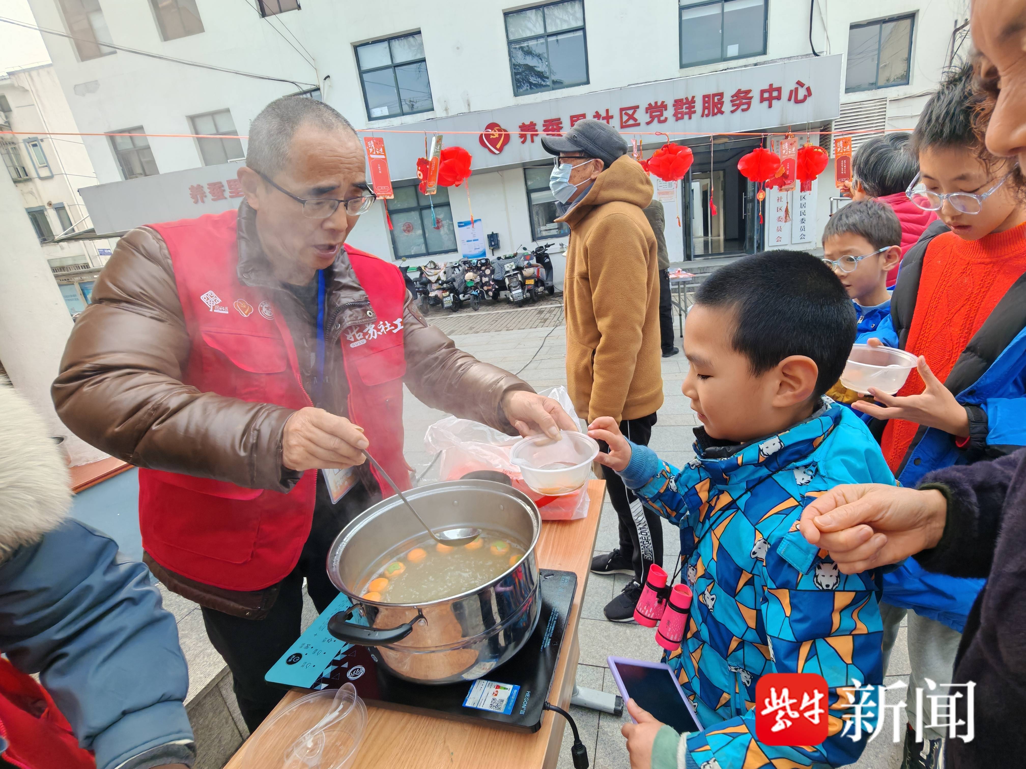 居民们陆续闻香而来,围聚在摊点前。社区工作人员与志愿者们亲手将一碗碗热气腾腾的“柿柿如意”汤圆递到居民们手中,并送上诚挚的马年祝福。