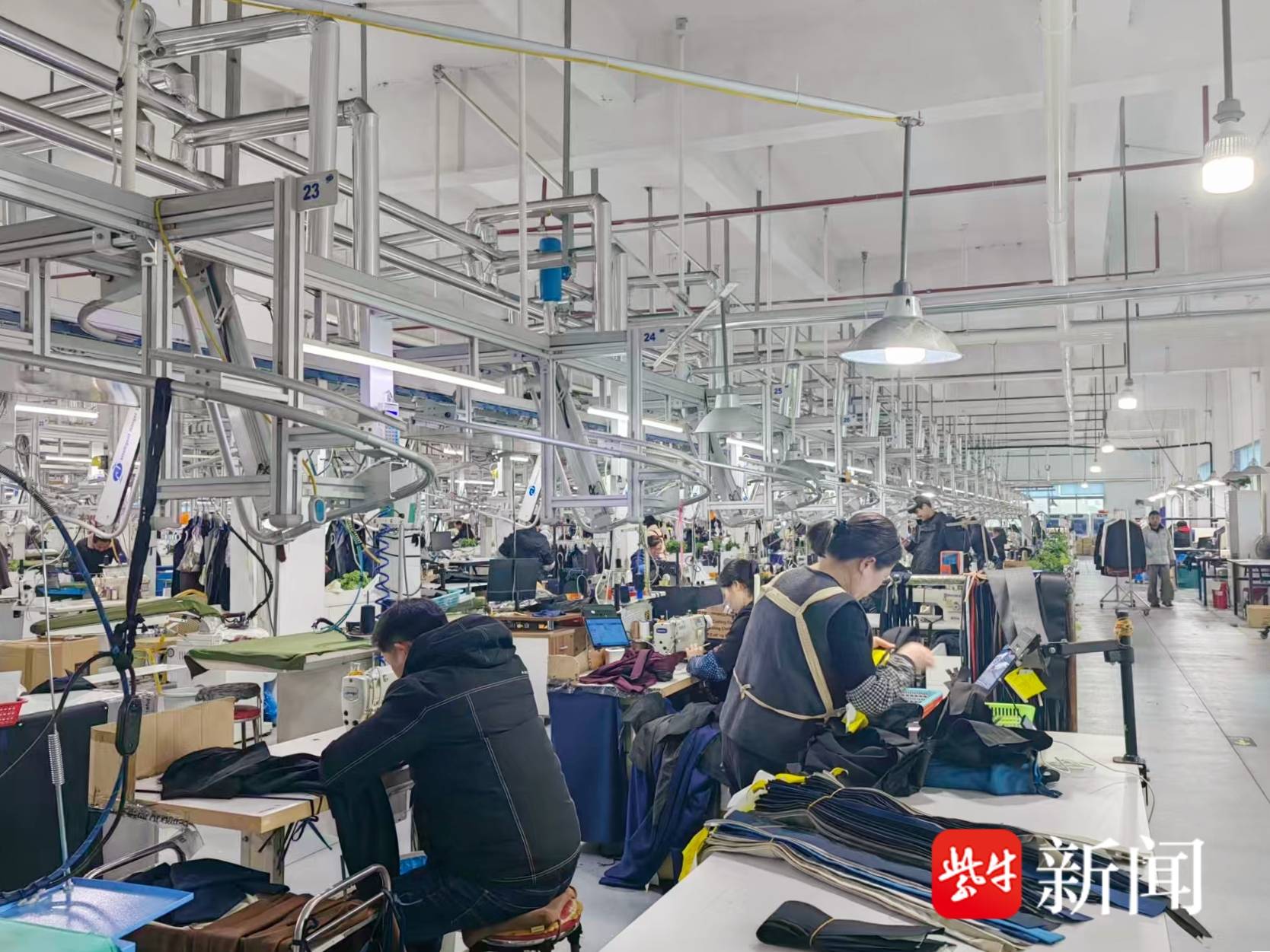 苏州马修佩里服饰有限公司的生产车间同样一片忙碌景象。当前服装订单已排至3月中旬,工人们有条不紊地赶制高端西服,全力保障订单按时交付。