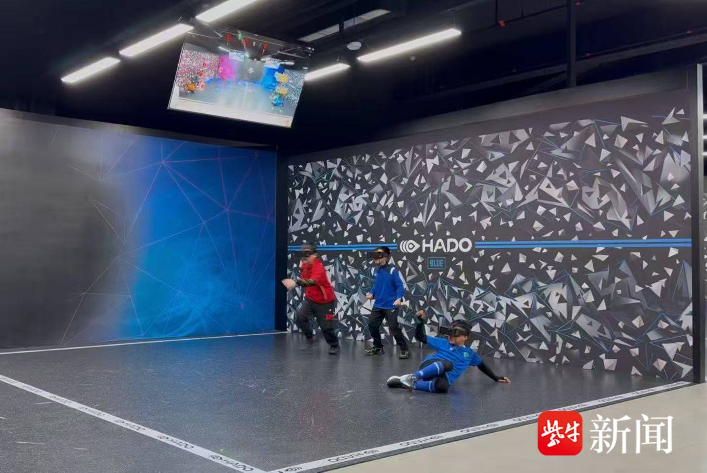 位于苏州金地广场的HADO运动场,是去年11月刚刚开业的苏州首店。扬子晚报/紫牛新闻记者走进场馆,这里没有传统球场的草坪、篮筐或球门,取而代之的是AR眼镜和腕带设备。这是一项融合增强现实技术与真实身体对抗的新型运动:参与者佩戴AR设备,在现实场地中通过手势释放“能量球”进行攻防,既需要精准出击,也考验灵活躲避,是一场“脑力+体力”的双重较量。