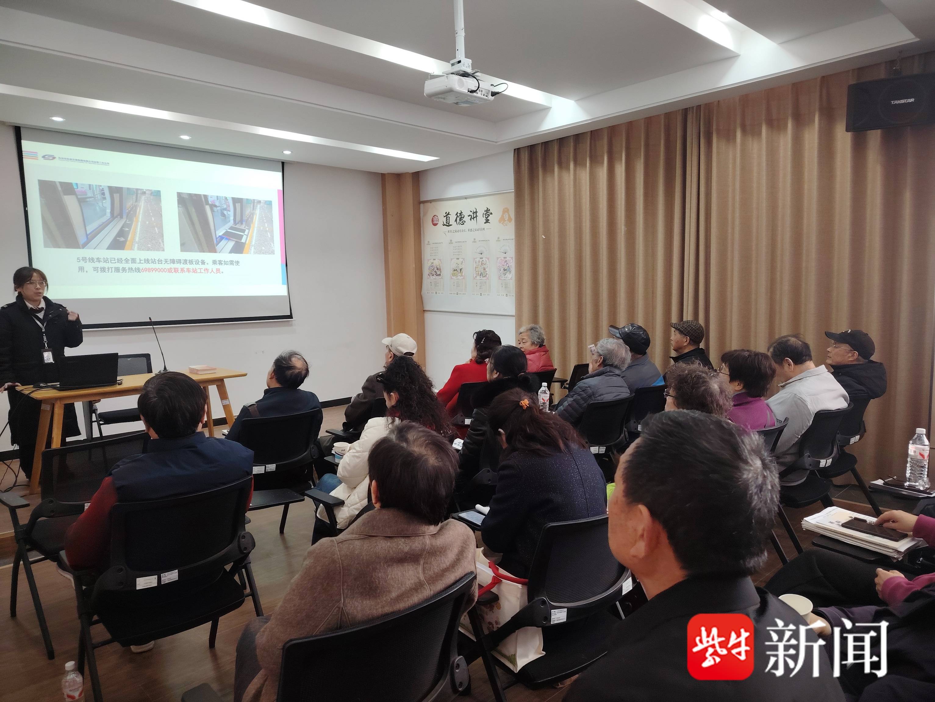 苏州地铁劳动路站的工作人员以“安全乘车、文明出行”为核心主题,为社区居民带来一堂系统、实用的安全科普课。通过真实发生的案例与通俗易懂的语言,全面讲解了地铁安检须知、站台候车规范及突发事件应急流程。针对社区老年居民较多的特点,讲座专门设置了“智慧助老”环节,细致解读“苏e行”APP关怀模式、无障碍电梯预约等多项适老化便民举措,助力老年群体安心、便捷融入轨道交通网络,使安全知识“入脑入心”。