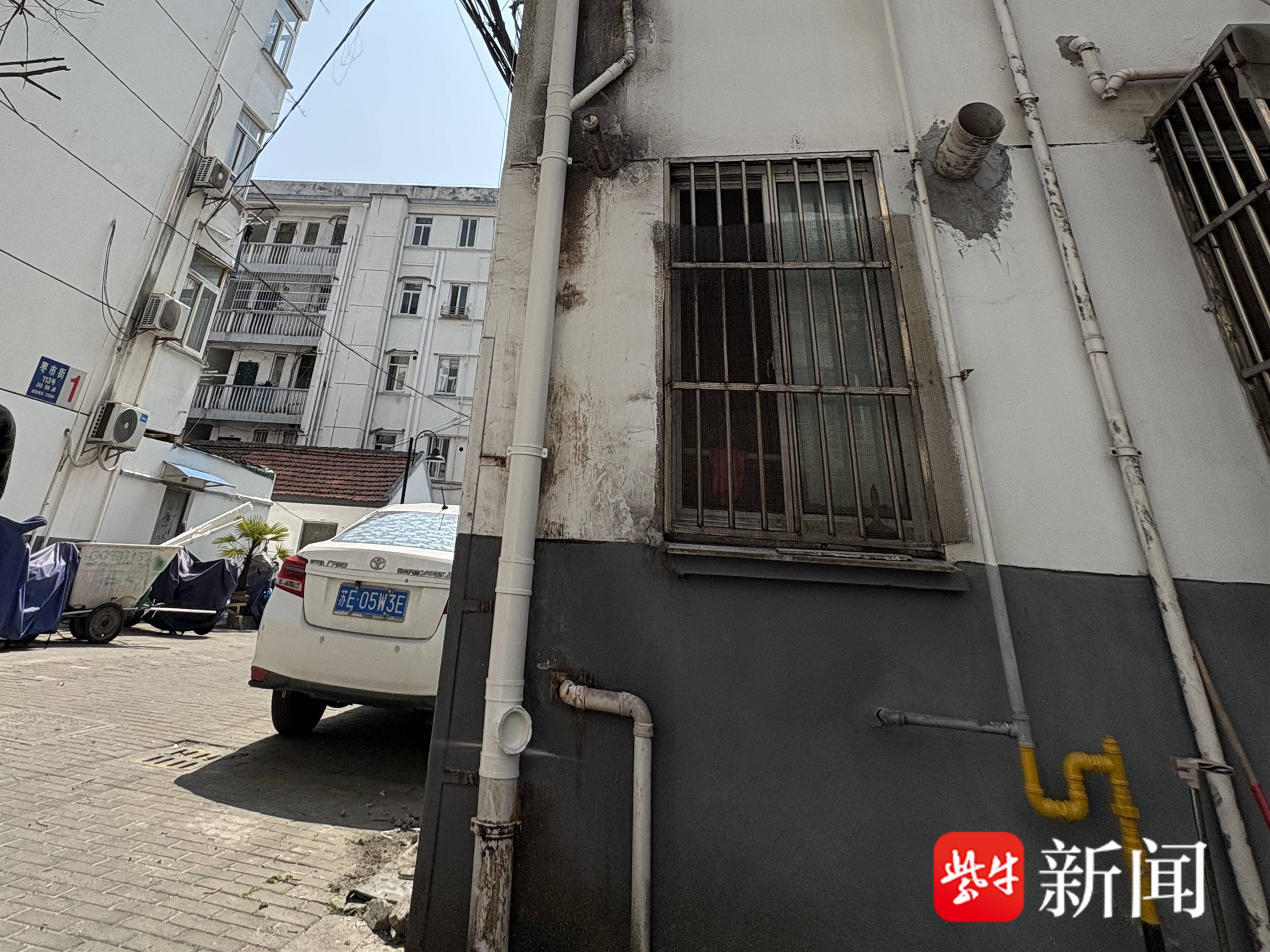 枣市街 114 号有几幢无物业零星楼,因建筑年代久远,雨水管损坏、脱落等状况时有发生,进而导致管道漏水,墙面、地面污水四溢等问题,给居民的日常生活造成了影响。此次在2幢东侧,有一根污水管在接口处损坏,污水不断流到路面,形成积水,居民进出极为不便。年纪较大、眼神不好的居民踩到积水,有滑倒的风险。