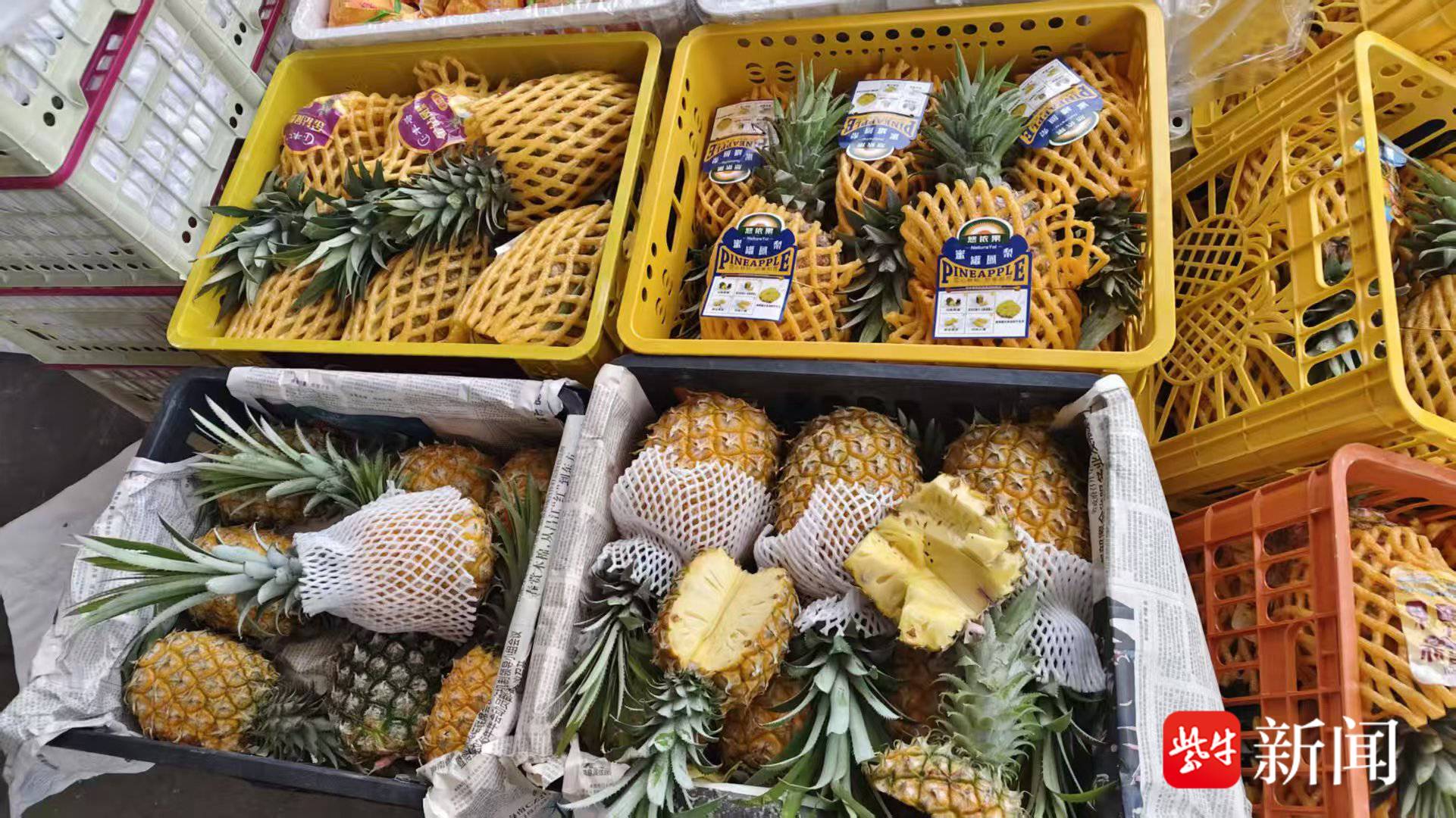 在苏州南环桥农副产品批发市场,金黄的凤梨堆成小山,果香四溢,吸引着络绎不绝的批发商和水果店老板。商户蒋先生一边招呼客人,一边向记者介绍:“现在卖的凤梨全是海南来的,气候好、土壤好,果子甜度高、汁水足,就算是长在阴面的果子,口感也差不到哪儿去。”
