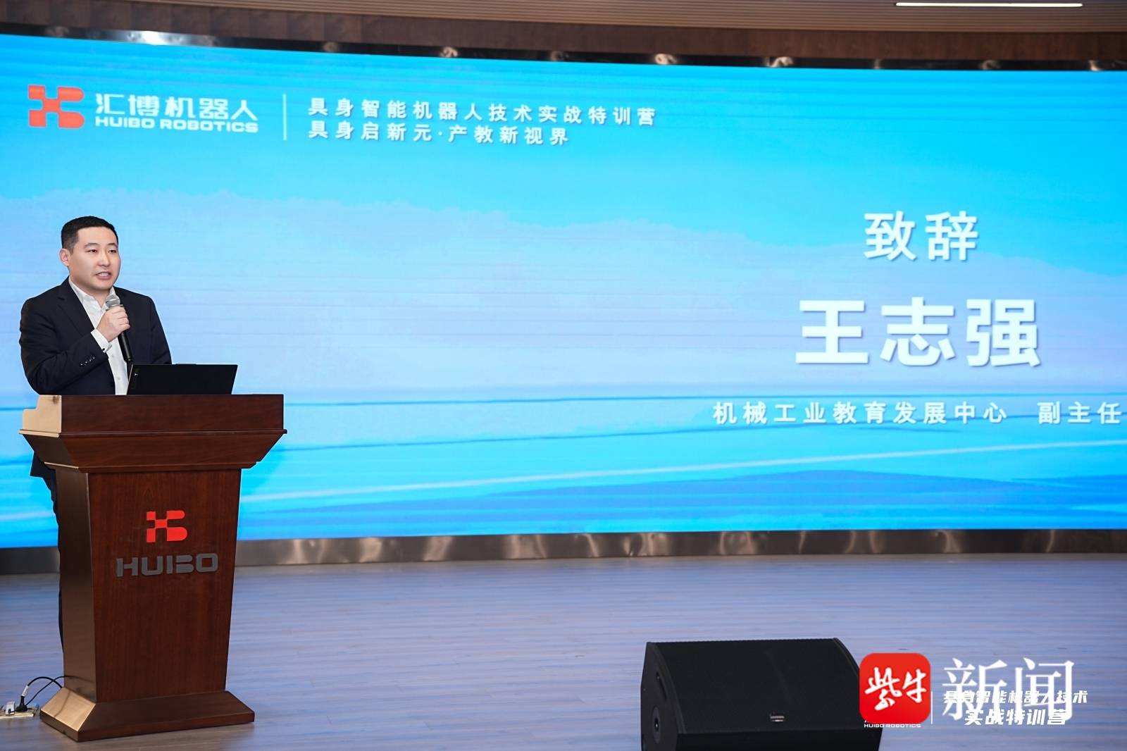 具身智能机器人实战特训营由机械工业教育发展中心指导、鹏城实验室支持、江苏汇博机器人技术股份有限公司主办。开班仪式上,机械工业教育协会副会长陈晓明、机械工业教育发展中心副主任王志强出席活动并致辞,汇博机器人集团总裁王振华代表主办单位向参加本次培训的专家、领导、老师表示诚挚的欢迎。
