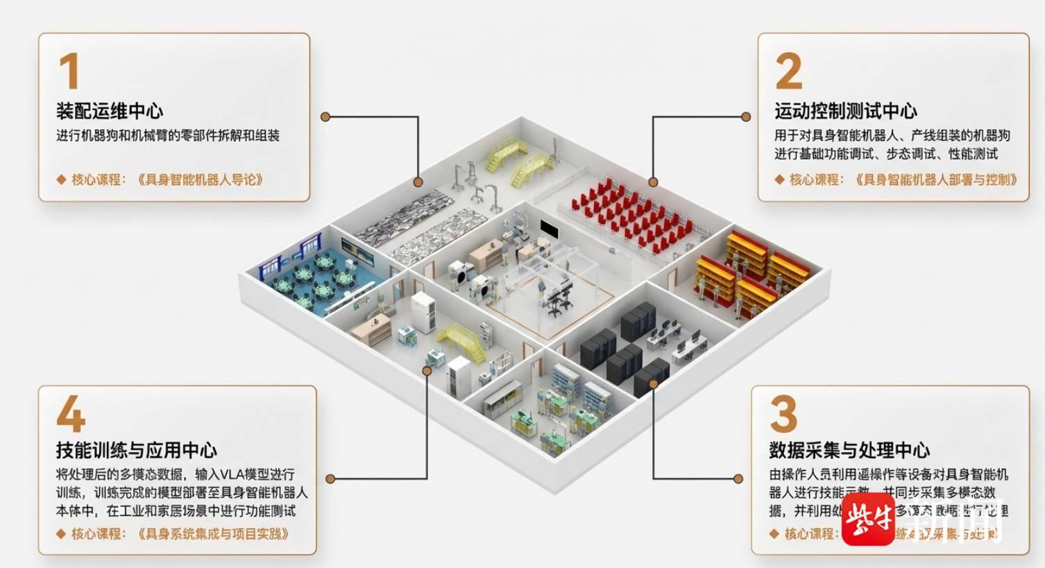 完善硬件生态:方案配置了全形态具身硬件矩阵,并搭建了支持多厂商本体验证的具身智能训练平台,以提升设备的教学利用率。