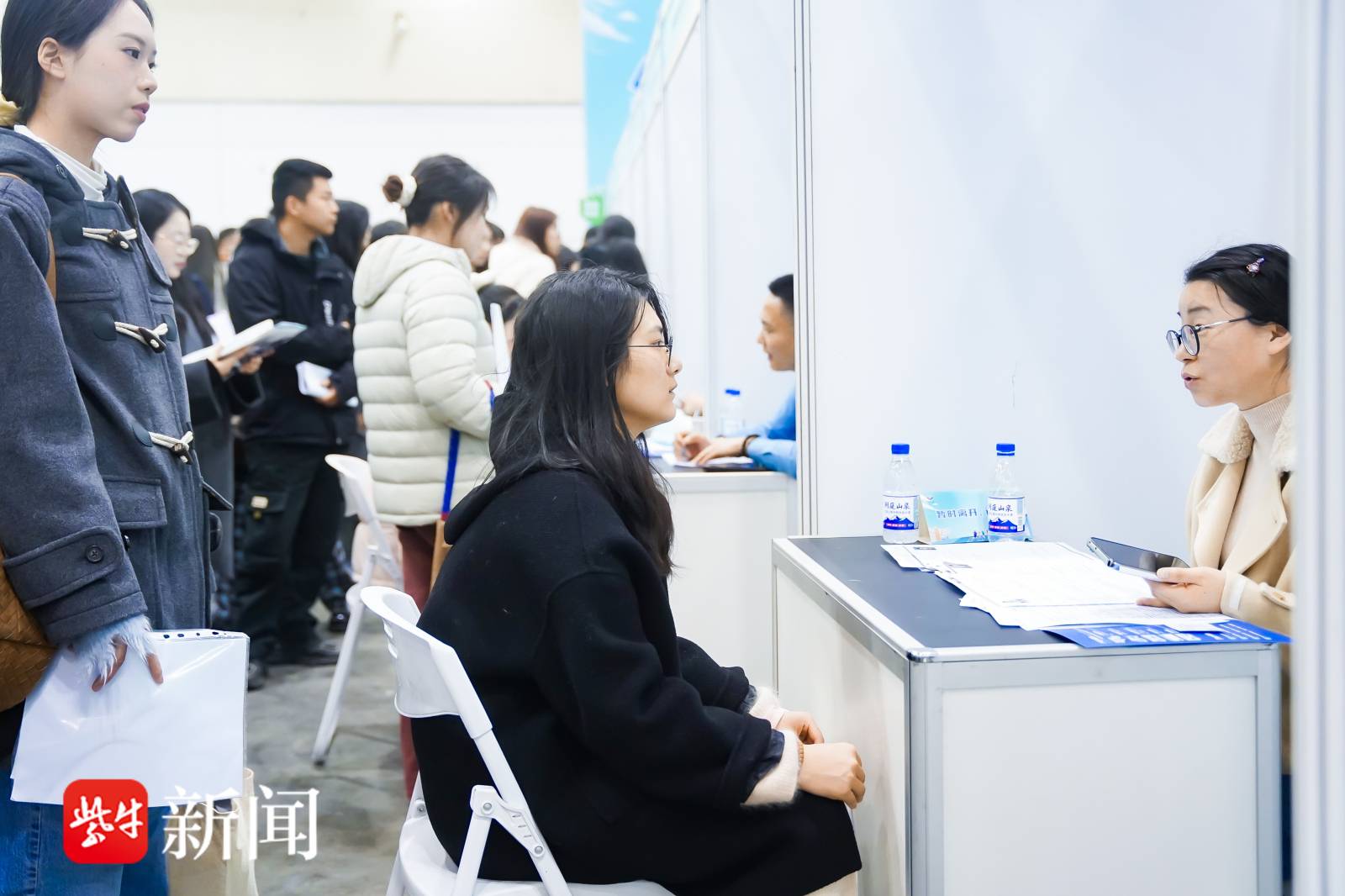 “我刚好计划来苏州找工作,一下车就看到有专门的接驳车,推着行李就来了。”从湖南赶来求职的王女士在招聘会现场的“苏式体验区”拍照打卡,手中拿着代金券正排队等待报名苏州地铁免费乘坐活动。她表示,这次求职经历让她印象深刻,“一座对年轻人友好的城市”是她对苏州的第一印象。
